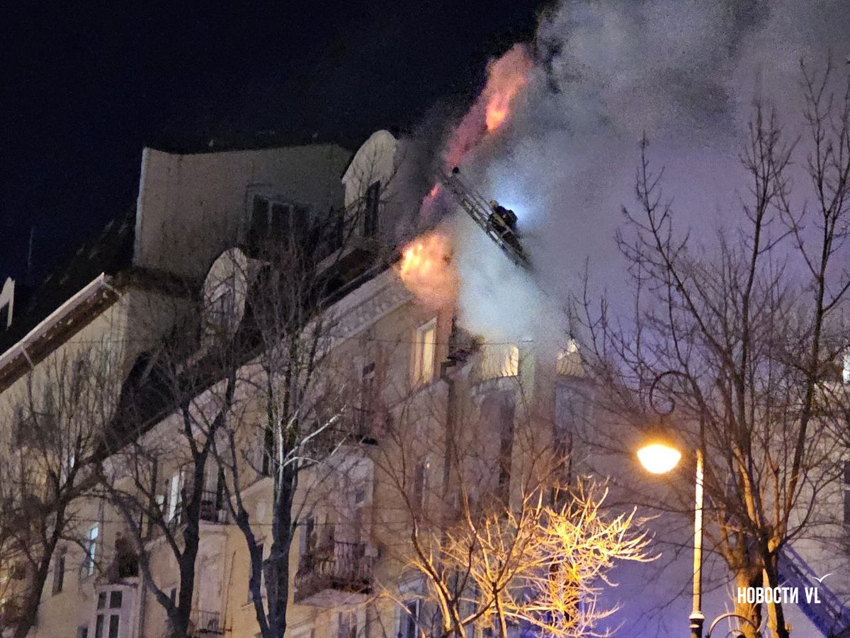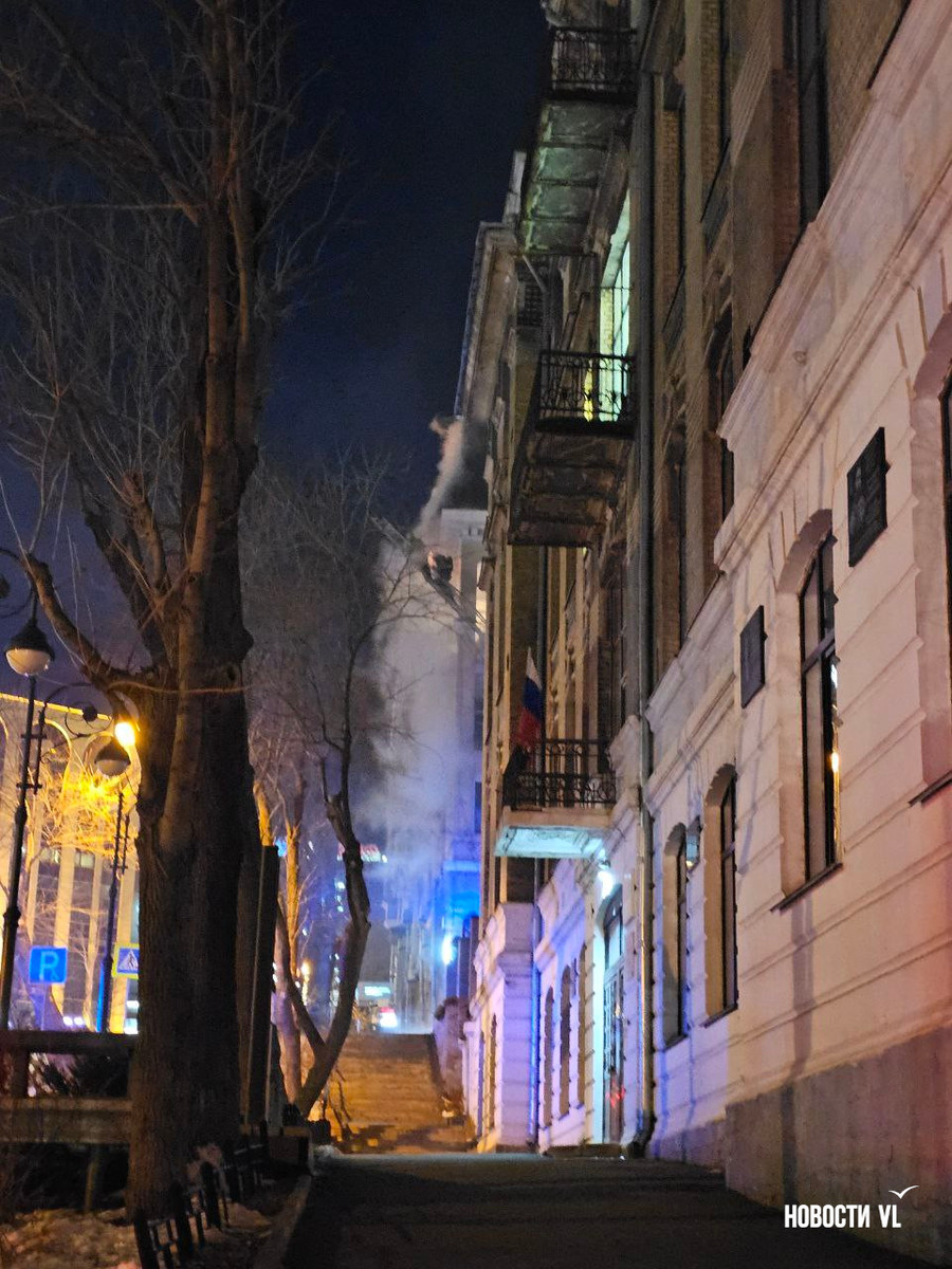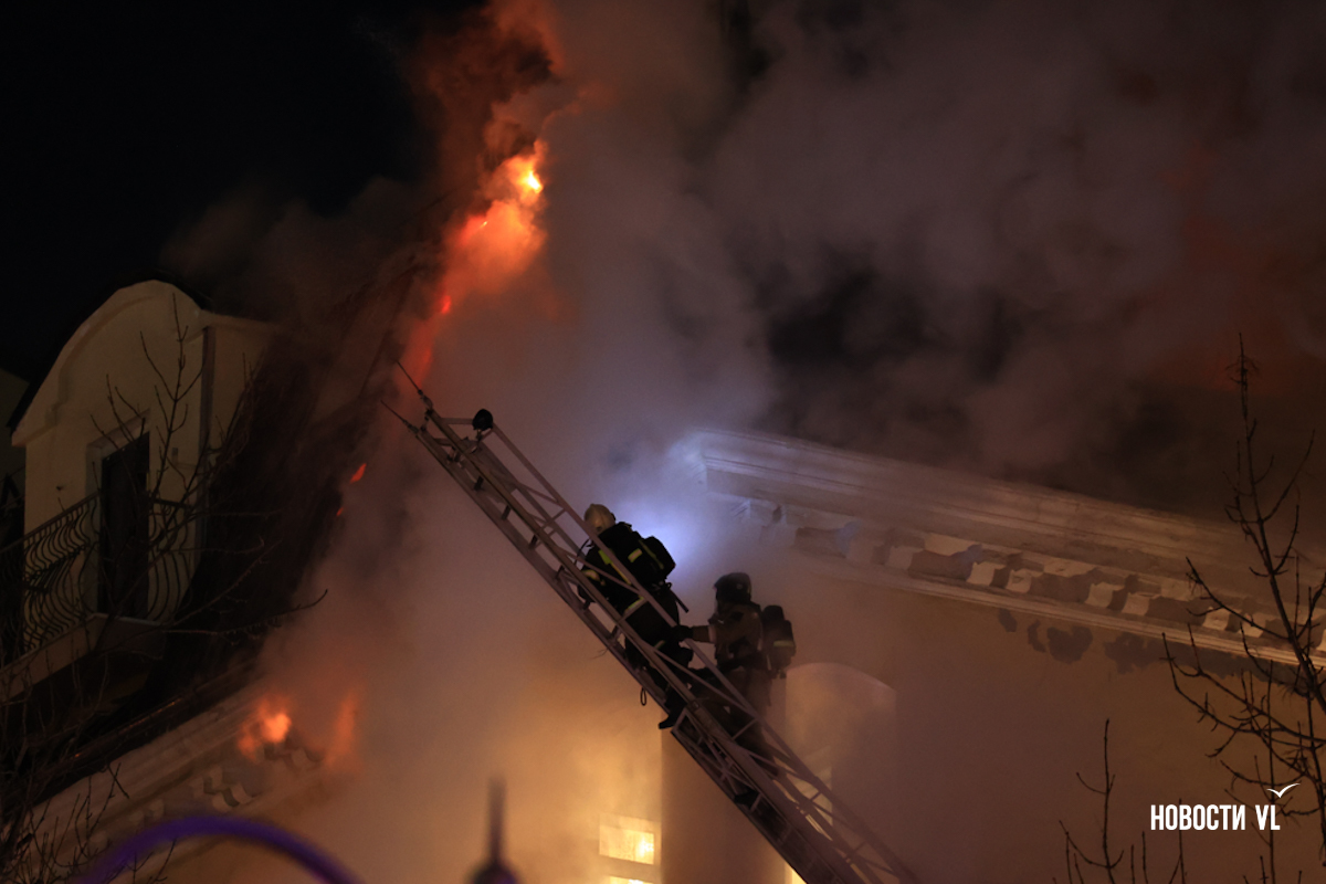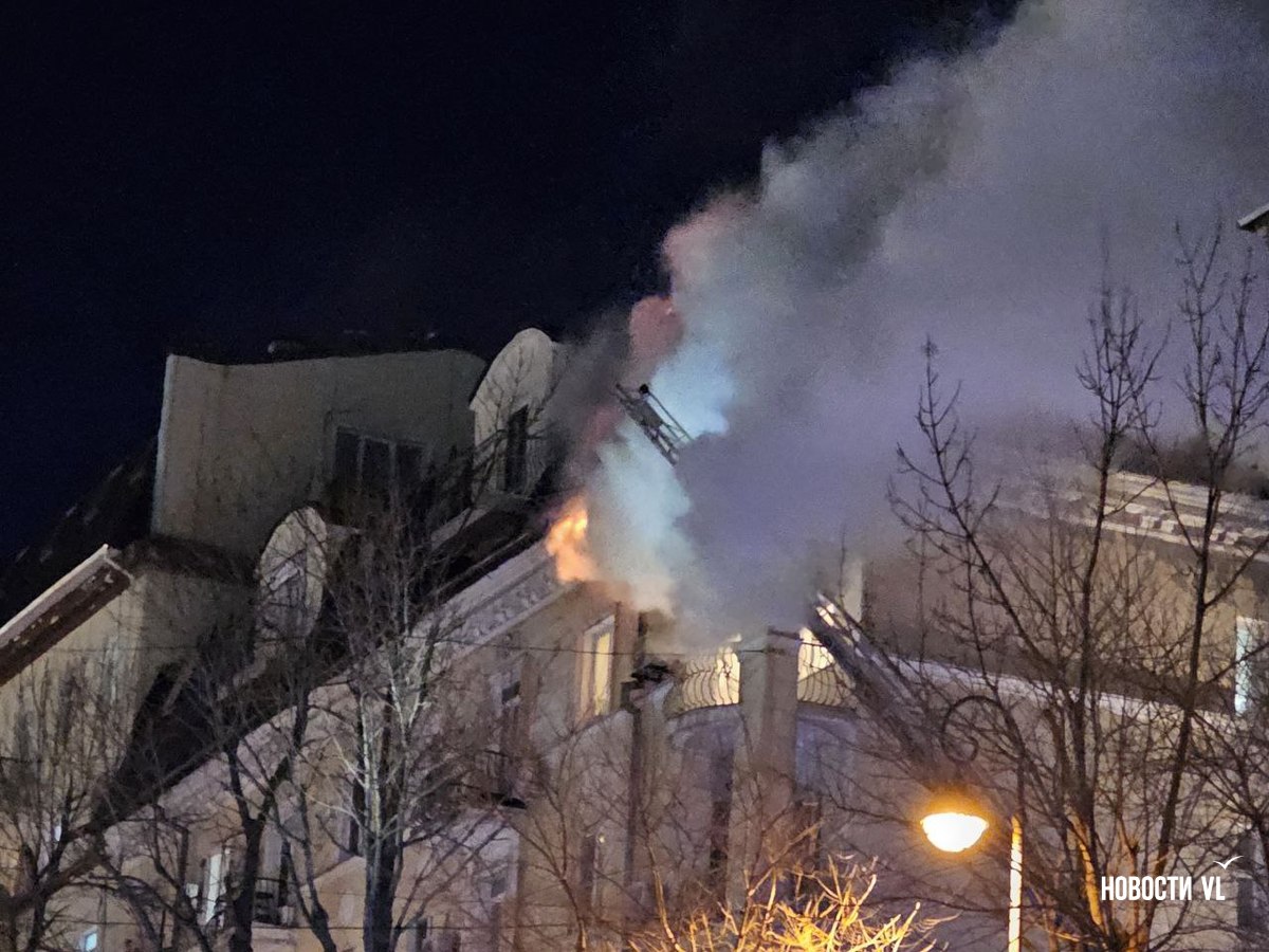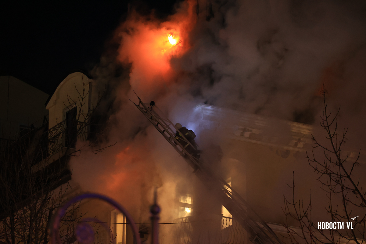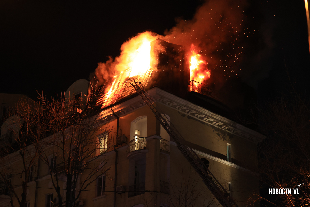 Вечером в среду, 3 декабря, во Владивостоке загорелся мансардный этаж жилого дома на Уборевича, 10а. Пожарное депо расположено прямо напротив, а соседнее здание – гимназия № 1. Пожарные пытаются потушить огонь, задействовав автолестницу.