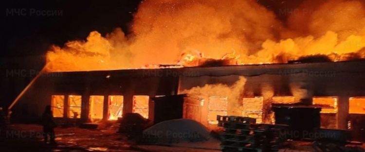 Сообщение о пожаре поступило в оперативные службы в 19:58. Когда на место прибыли пожарные, горела крыша склада, шёл густой чёрный дым. Возгорание потушили в 03:50.