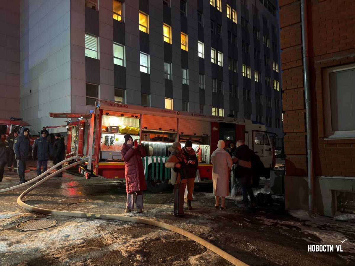 Из вновь прибывших машин пожарные достают спецснаряжение и надевают на себя, дыма очень много, дышать можно только с помощью «аквалангов». Столб дыма виден уже из нескольких районов города.