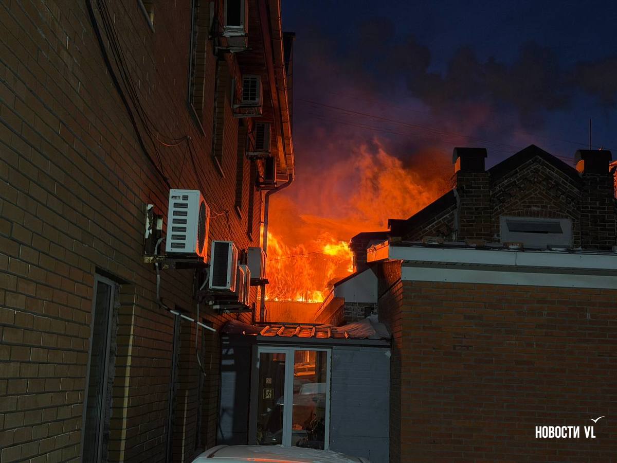 В здании на Пограничной, 15а с торцевой стороны, которая прилегает непосредственно к пожару, находилась стоматологическая клиника. Как рассказывает её владелец, там полопались стекла, но уже все залили водой. Был риск пожара, но сейчас его нет.