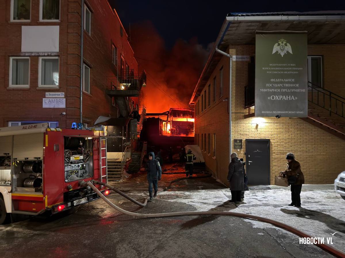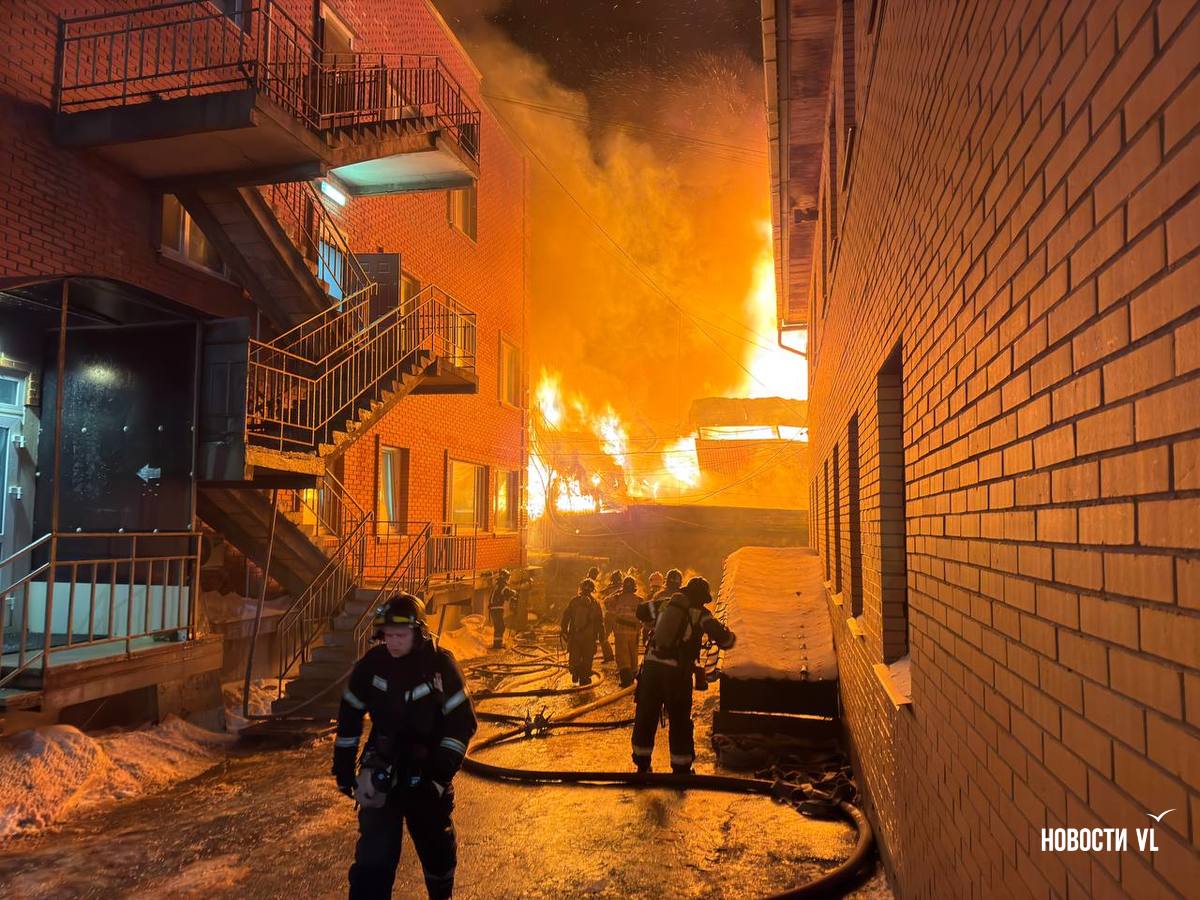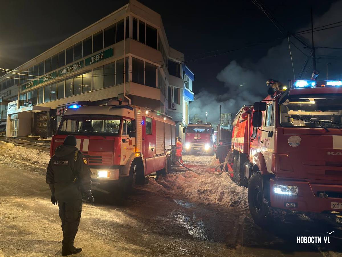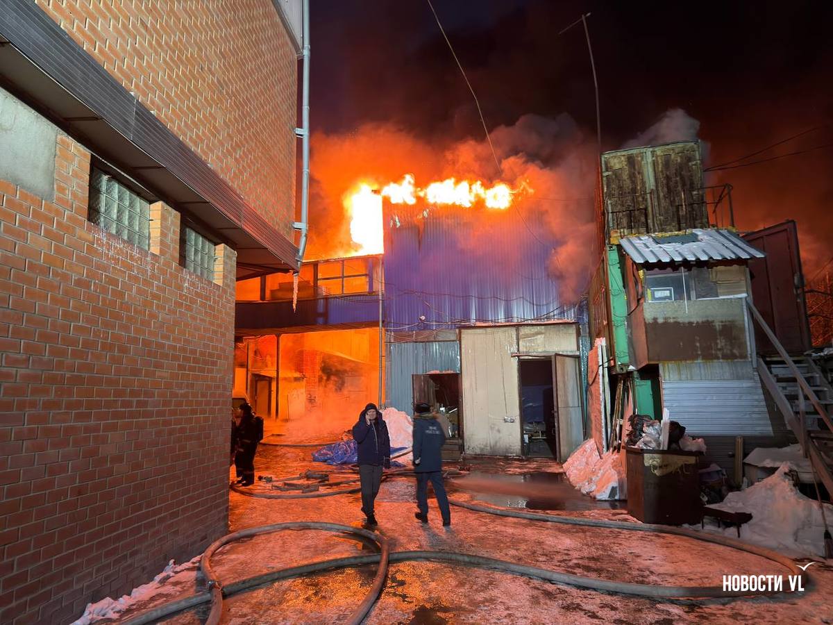 Вечером в пятницу, 16 января, во Владивостоке в районе перекрёстка Пограничной и Лесного переулка загорелись склады. По предварительным данным, там хранится мебель для расположенных рядом салонов. Очевидцы говорят, что огонь разгорелся очень быстро. На месте работают несколько пожарных автомобилей.