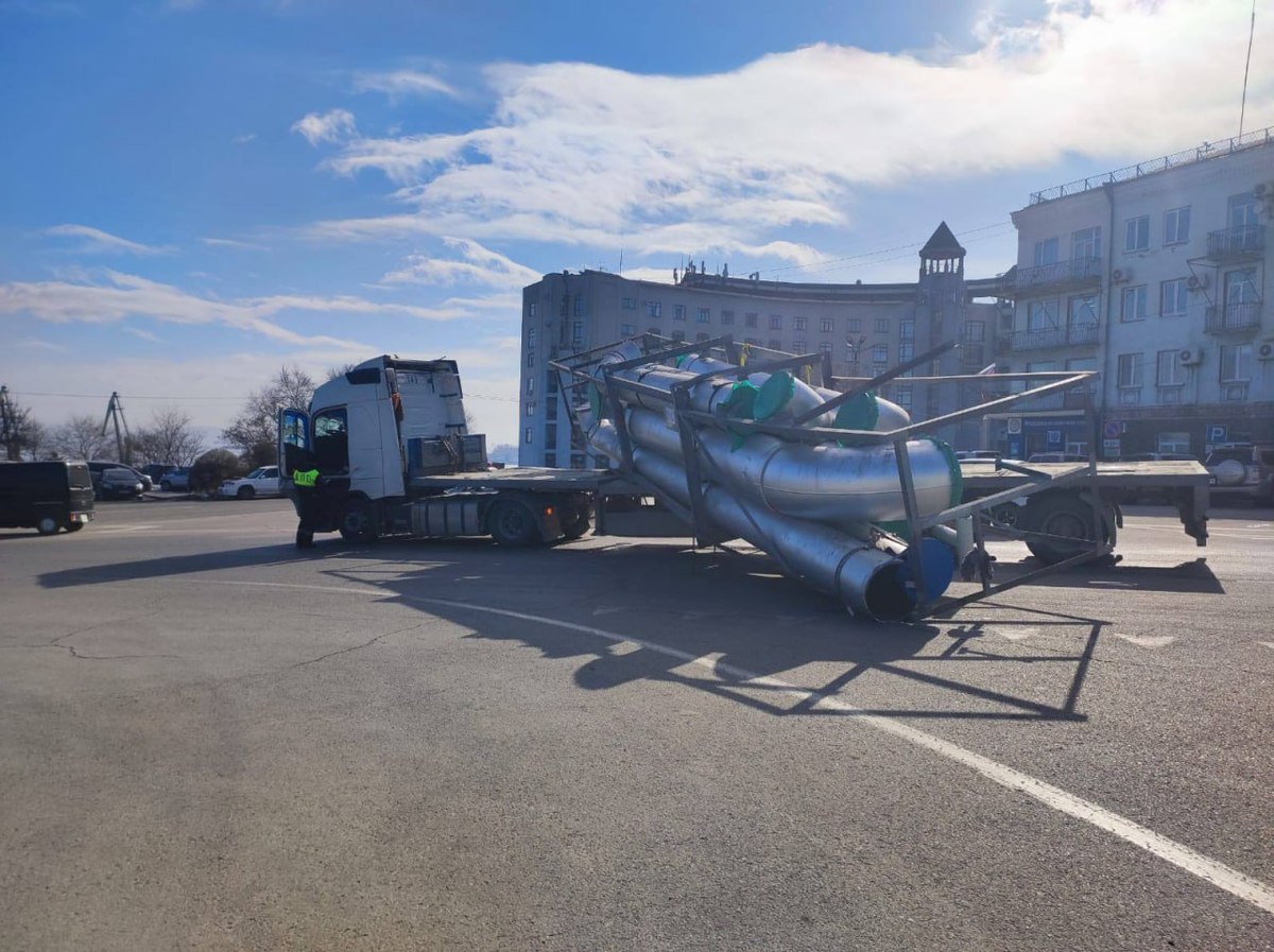 Во вторник, 3 февраля, в центре Находки с длинномера сорвался груз. Трубы, которые он перевозил, частично оказались на асфальте. Никто не пострадал. На водителя составили четыре административных протокола, в том числе за нарушение правил перевозки грузов.