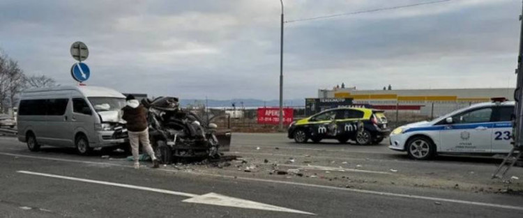 ДТП произошло в районе 726-го км автодороги А-370 «Уссури». Предварительно установлено, что 50-летний водитель автомобиля Toyota Hiace, двигаясь со стороны Владивостока в направлении Уссурийска, не выбрал безопасную скорость, не справился с управлением и совершил наезд на стоящий автомобиль Toyota Passo. От удара Toyota Passo совершил наезд на впереди стоящий автомобиль 3009Z7. Далее автомобиль 3009Z7 по инерции совершил наезд на впереди стоящую Honda Insight.