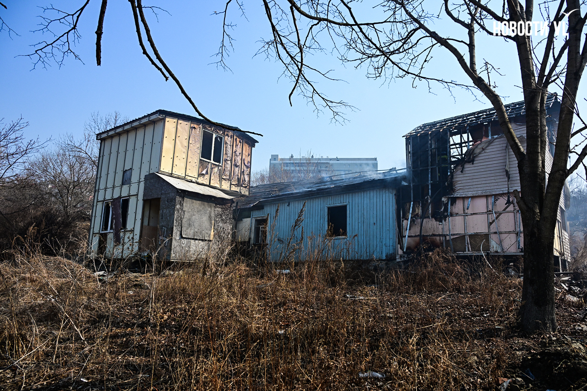На Чуркине в заброшенном частном секторе сгорел одноэтажный дом с кучей пристроек. В нём никто не жил, и в будущем на его месте построят две многоэтажки с видом на Золотой мост. Весь этот участок – более 3 гектаров на улице Ольховой – передали под реновацию.