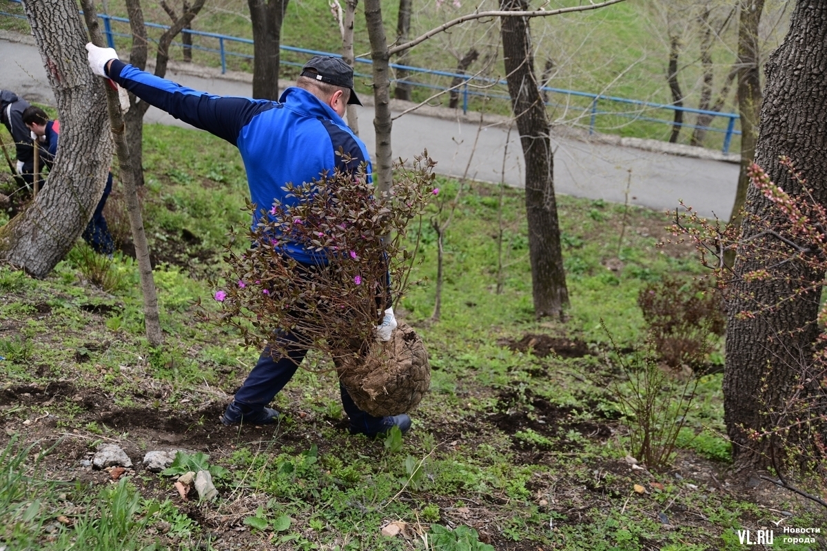 Сейчас чистим ещё два участка, и вот буквально в воскресенье из управления городской среды нам привезли ёлочки и посадили в местах, где мы им указали. Ещё надо будет починить деревянный пирс и срубить гнилое дерево, с которого упала очень большая ветка, – я в администрацию города отправлю заявку, чтобы его убрать. Жаль только, что под мероприятия по озеленению не выделяют грунт. Для работы на придомовых территориях управляющие компании или ТСЖ землёй обеспечивают. Думаю, что администрация Владивостока сможет решить как-то этот пробел.
