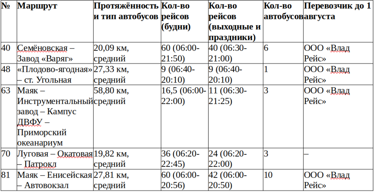 Все перевозчики должны соблюдать расписание, чистоту внутри и снаружи автобусов. Водители должны быть в форменной одежде, не курить, не разговаривать по телефону, не включать музыку и не смотреть «видосики». Интересно, что именно перевозчик должен обеспечивать своим водителям санитарно-бытовые условия на начальных и конечных остановках. То есть это банальный туалет. Новости VL в прошлом году делали материал, как это обеспечивается сейчас (спойлер – никак).