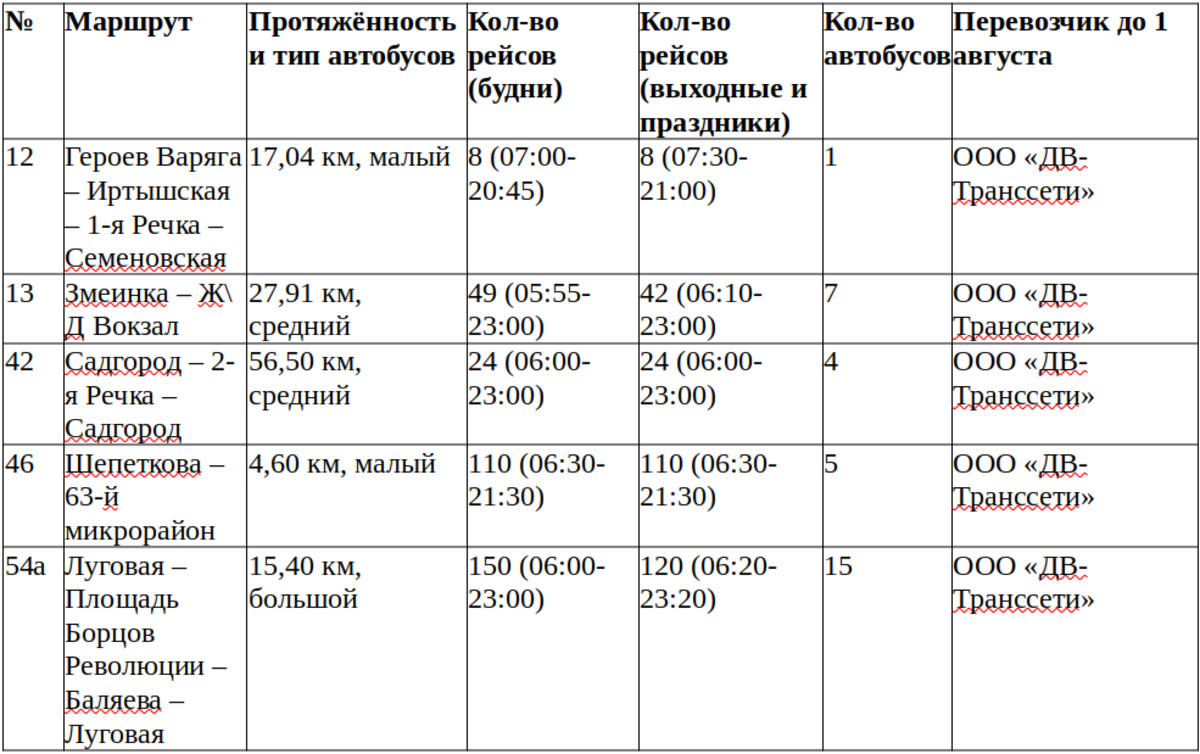 Контракт на маршруты № 12, 13, 42, 46 и 54а тоже не изменился, и его тоже выполняет сейчас ООО «ДВ-Транссети». Начальная цена нового контракта составляет 41,11 млн рублей. Общая протяжённость 121,45 км.