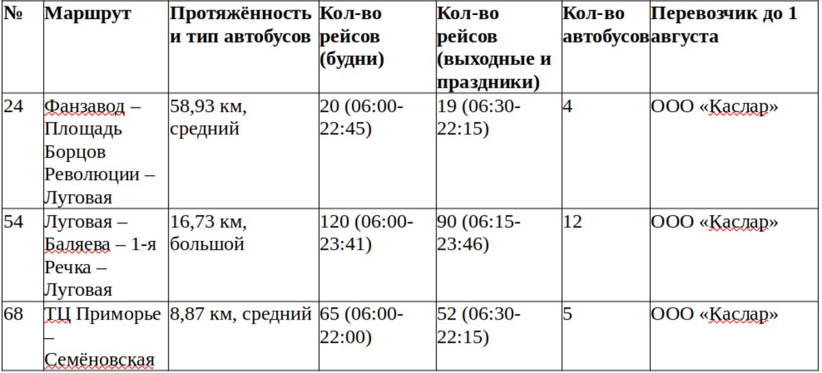 Новому маршруту убрали один рейс-«половинку», оставив ровно 24 ежедневно. Остальные маршруты без изменений.