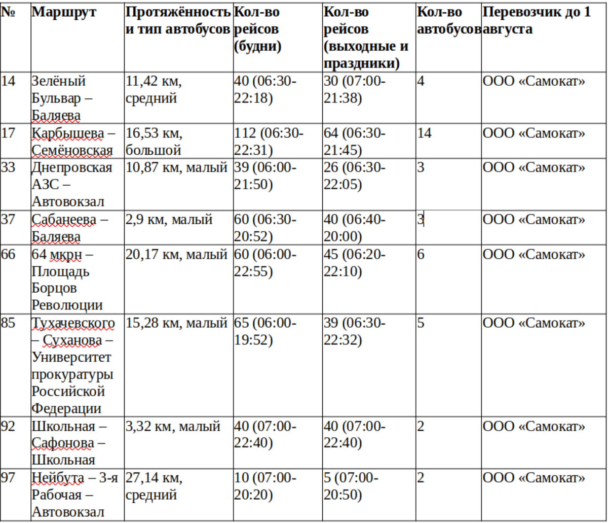 За 41,2 млн рублей предлагается возить маршруты № 14, 17, 33, 37, 66, 85, 92 и 97. Все их без исключения обслуживает сейчас «Самокат». Несмотря на количество, это всё относительно небольшие маршруты, общая протяжённость которых составляет 107,63 км.