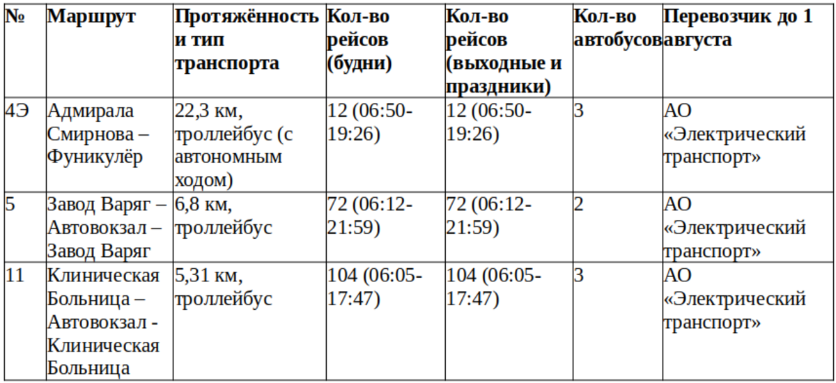 Помимо автобусов, есть ещё два контракта на перевозки троллейбусами. Они и того короче. Маршруты № 11 и № 5 будут возить пассажиров с 1 августа по 14 декабря этого года за 6,31 млн рублей. Новый маршрут, № 4э, – это троллейбус на автономном ходу. Он будет работать до 30 ноября 2025 года за 3,59 млн рублей. И сами троллейбусы, и перевозчик сейчас – муниципальные. Здесь вряд ли что-то изменится, но торги проводить, видимо, положено, вдруг у кого-то застоялось нужное количество электрического транспорта.