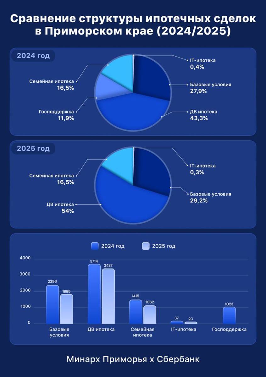С 1 февраля 2026 года запретят оформлять по две «Семейные ипотеки» на одну семью. Информацию подтвердили в Министерстве финансов РФ. В Приморском крае это не самая распространённая ипотека – с начала года её смогли взять 1062 человека. Чаще берут «Дальневосточную» и ипотеку без господдержки.