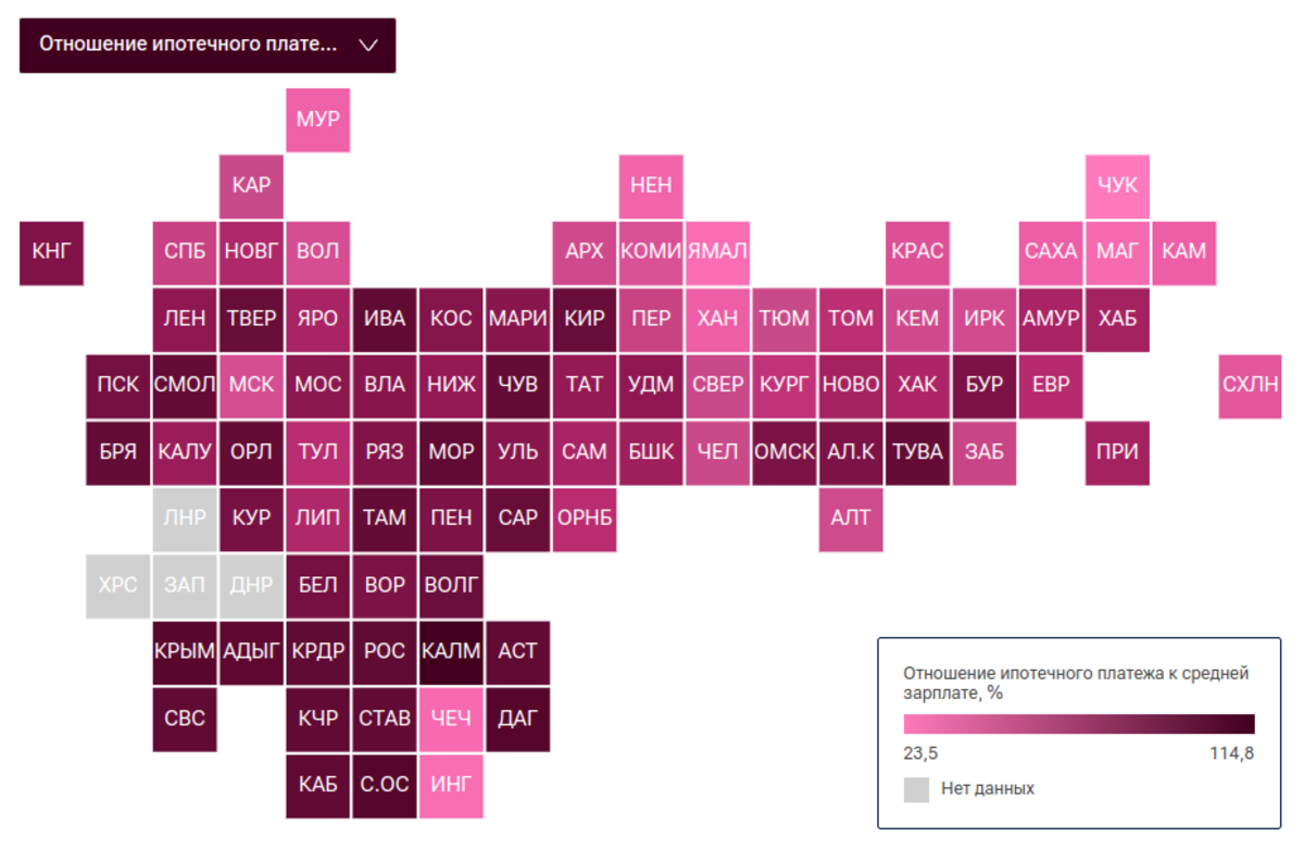 Согласно результатам исследования, соотношение средних платежей по ипотеке и средней зарплаты семьи из двух работающих человек достигло 48,8%. То есть для оплаты фактической ипотеки, которую в реальности брали люди, необходимо будет отдавать примерно половину средней зарплаты по стране.
