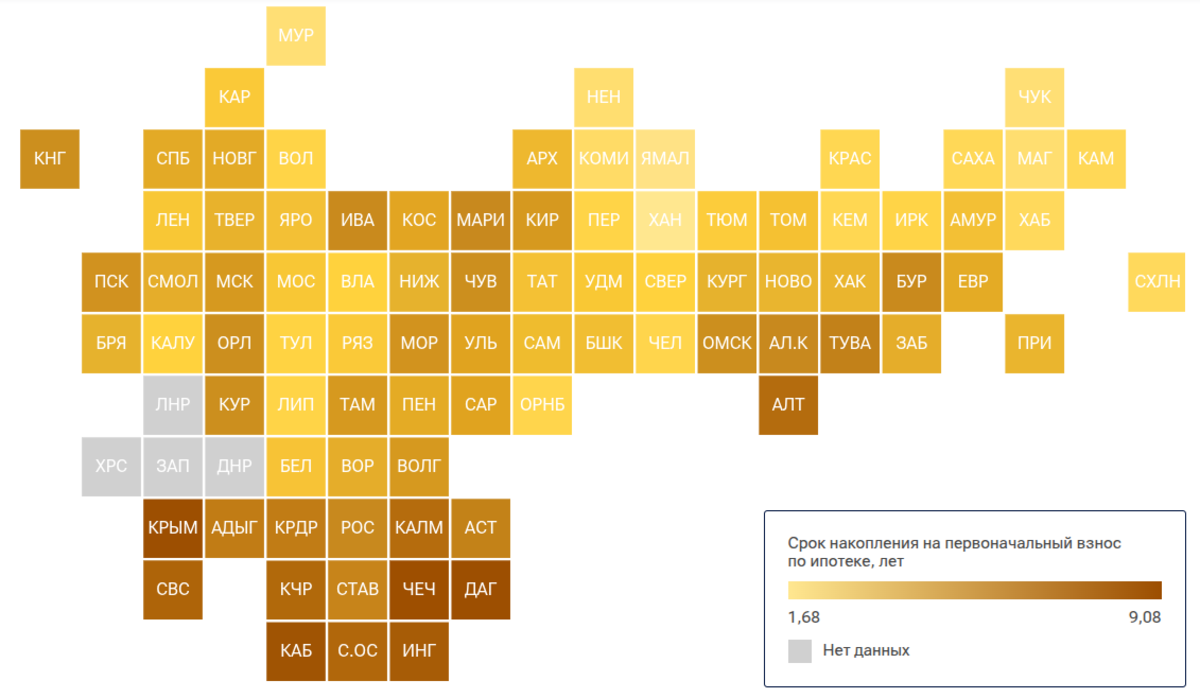 Приморский край остаётся в середине рейтинга регионов по сроку накопления первоначального взноса по ипотеке. Средней приморской семье с ребёнком потребуется 3 года и 5 месяцев, чтобы отложить необходимую сумму, что на два месяца меньше, чем годом ранее. При этом аналитики для своего исследования взяли очень недорогую квартиру – в новостройках Владивостока такие можно купить только в Трудовом, а на вторичке есть около 90 предложений.