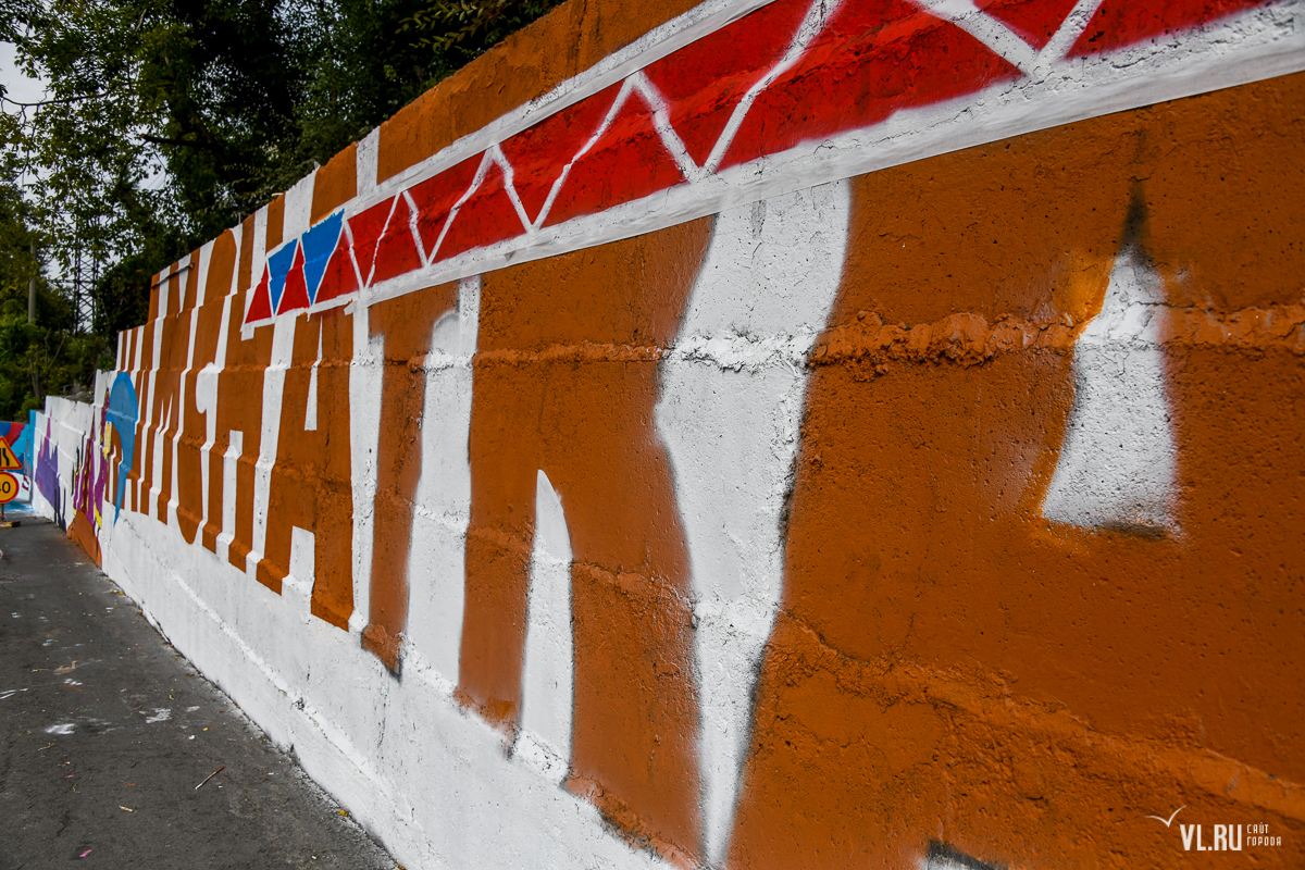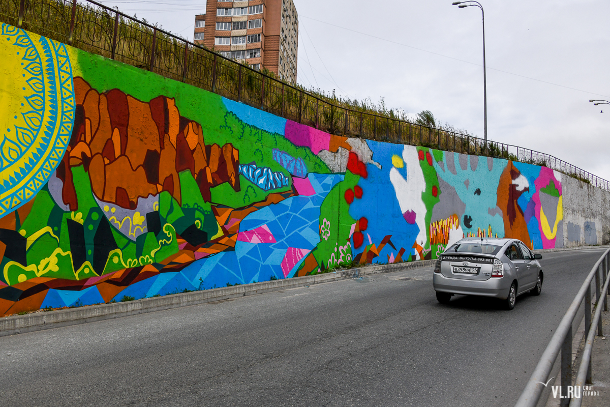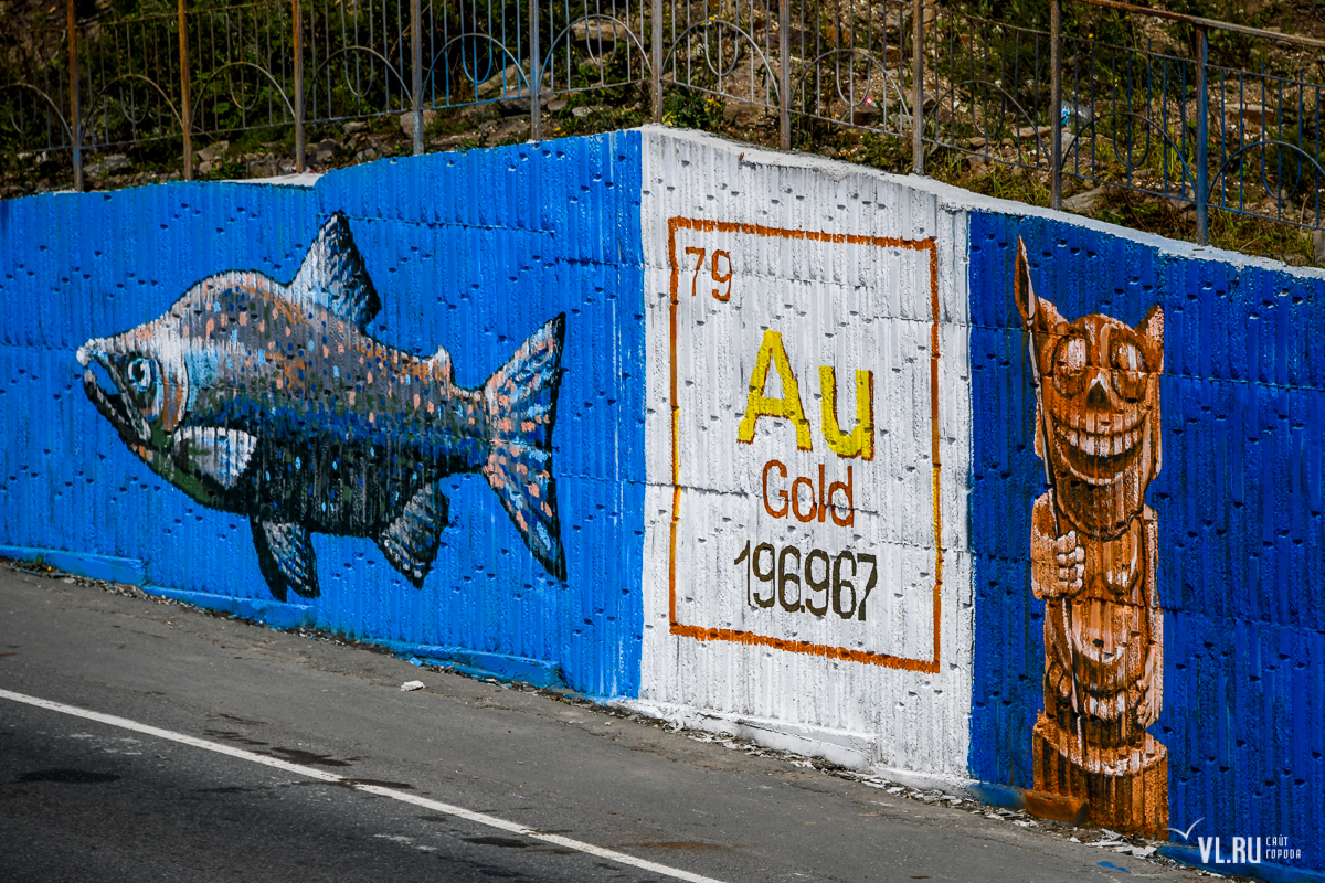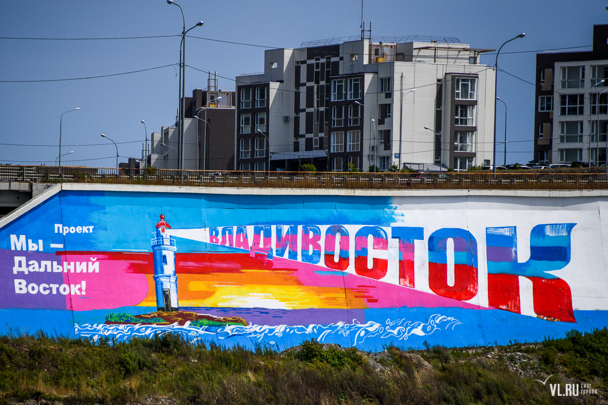 «Владивосток в этом месте рисовать изначально не планировали, в рамках подготовки к ВЭФ наше управление по делам молодёжи организовало роспись других шести подпорных стен по проекту «Молодой Владивосток». Но Росконгресс попросил, чтобы мурал столицы Приморья всё-таки был отдельно, около въезда на остров», – уточнил Павел Шугуров.