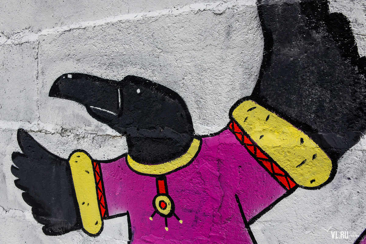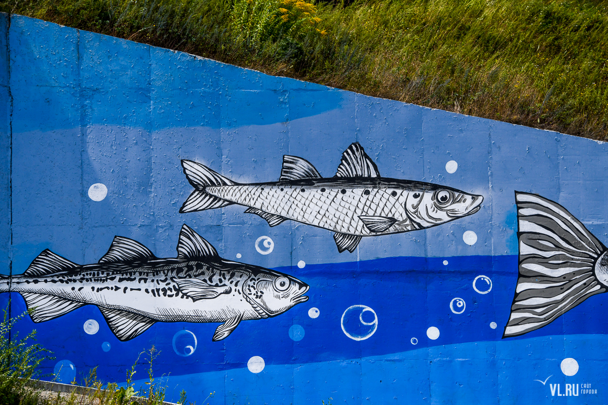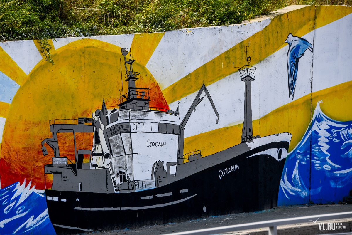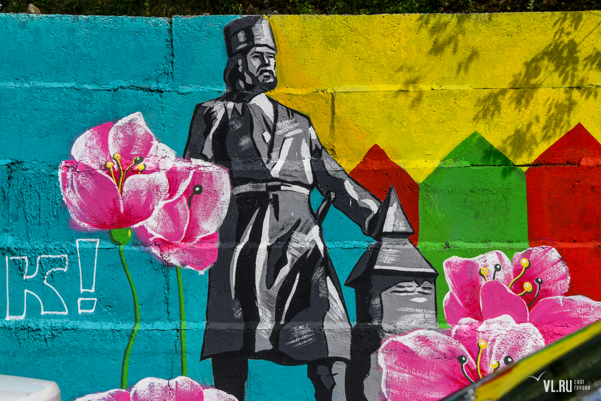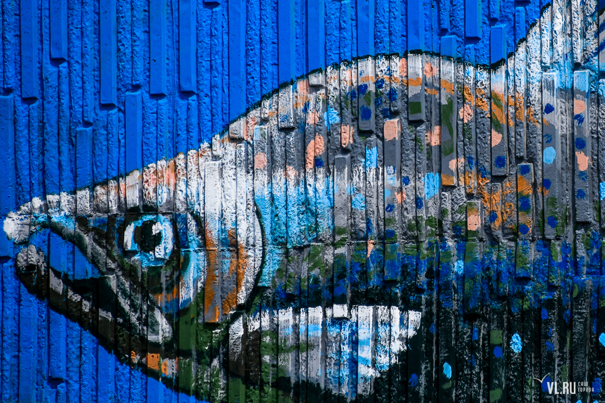 «Владивосток в этом месте рисовать изначально не планировали, в рамках подготовки к ВЭФ наше управление по делам молодёжи организовало роспись других шести подпорных стен по проекту «Молодой Владивосток». Но Росконгресс попросил, чтобы мурал столицы Приморья всё-таки был отдельно, около въезда на остров», – уточнил Павел Шугуров.
