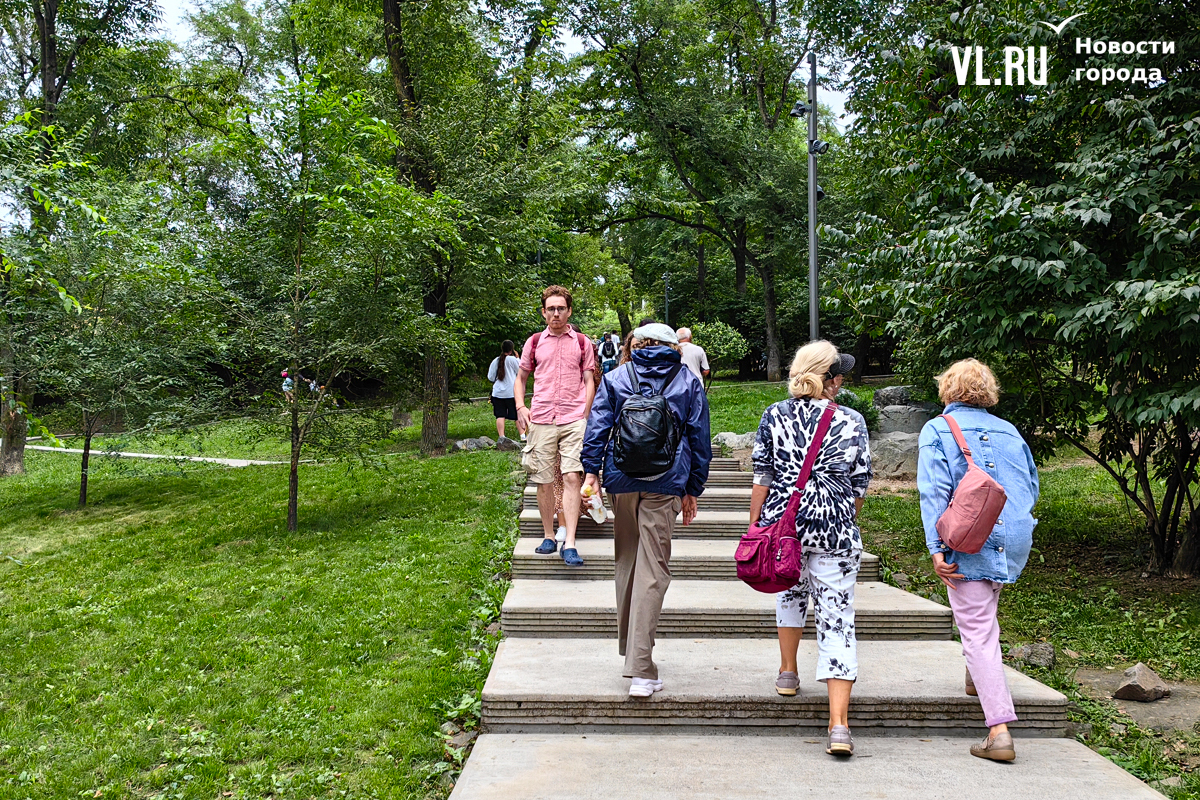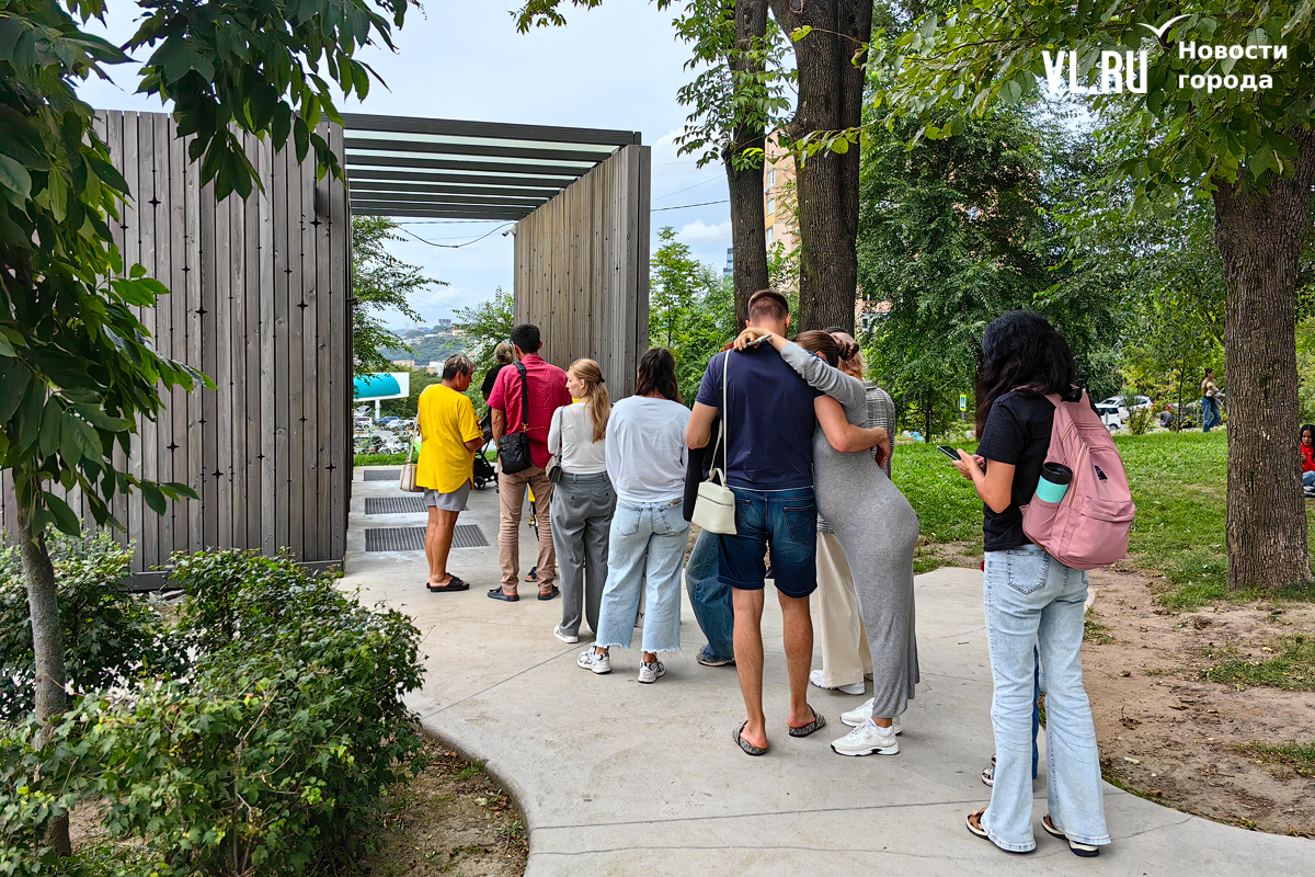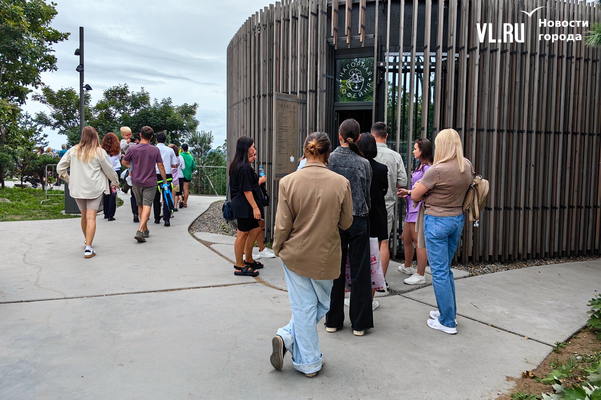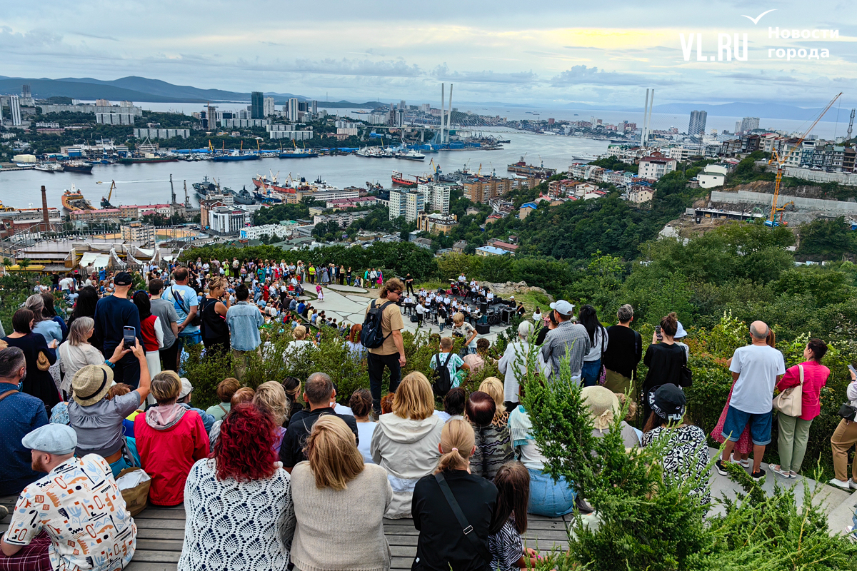 Поднимаясь на видовую площадку, гости поговаривали, что вчера даже сесть некуда было, поэтому приехали пораньше – и всё равно полно людей. Кофейни внизу задолго до концерта собрали очередь, как и туалеты. На сопке действительно все лавочки, лужайка и даже все камни были заняты. Кто-то прихватил покрывала и коврики. Многие стояли, дети сидели прямо на самокатах.