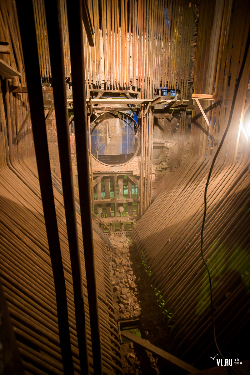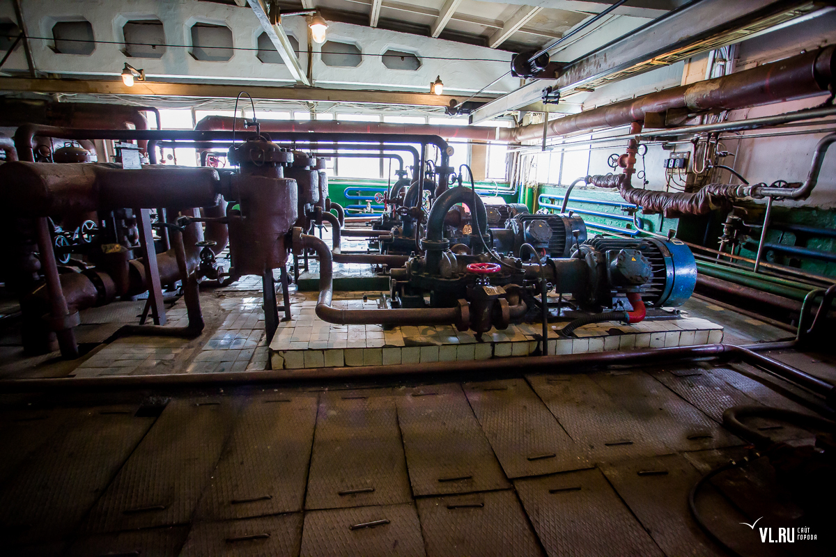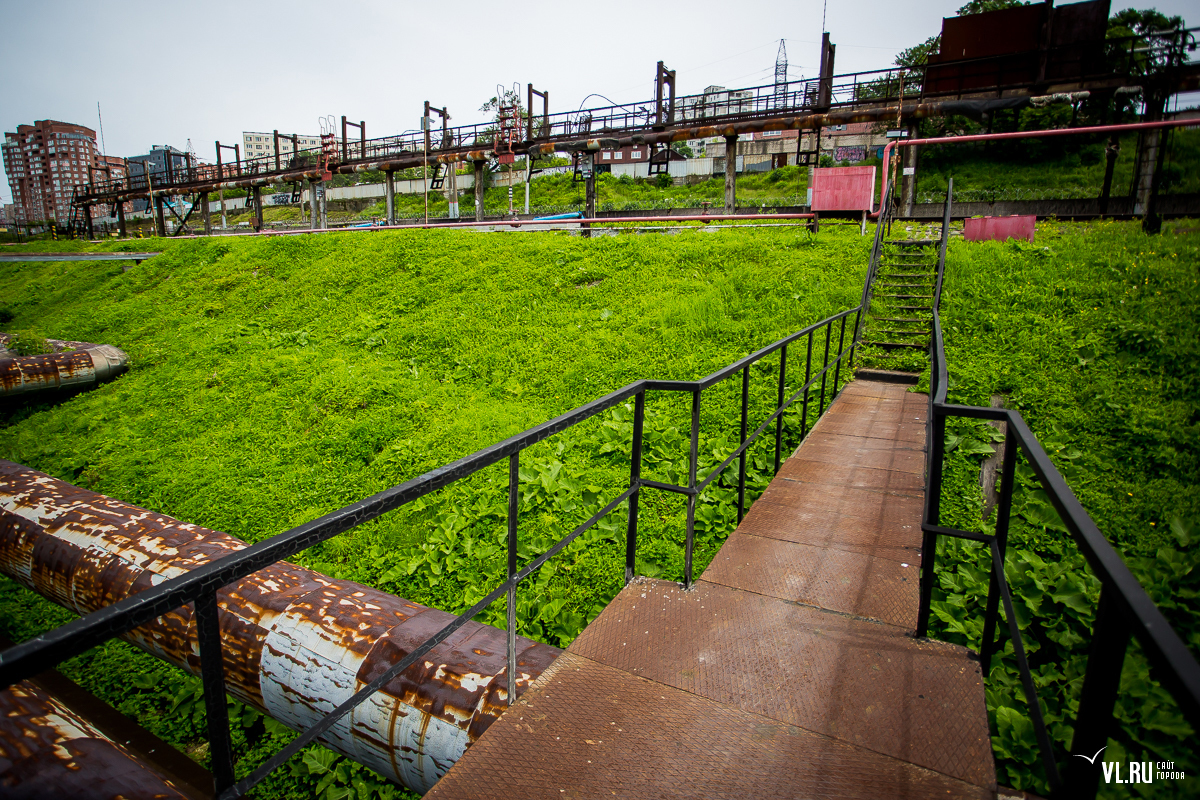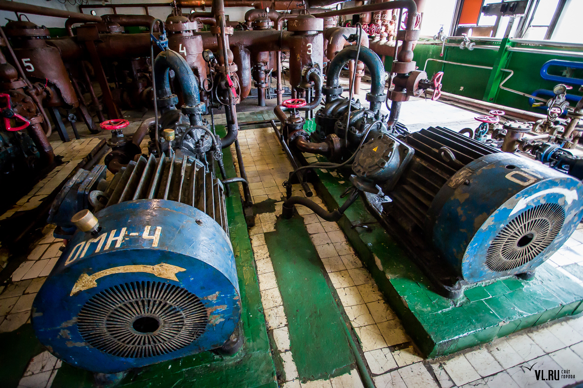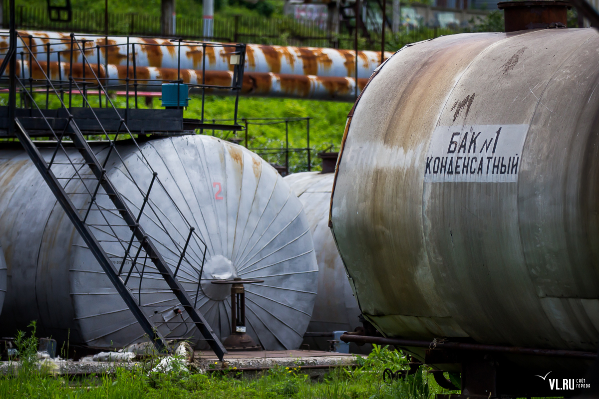 Паромазутопроводы тоже всегда в полной готовности. Трубы проходят рядом с газовыми. По первой трубе пар заходит, по второй возвращается: пар греет мазут, превращается в конденсат, конденсат — в воду. А воду сбрасывают в очистные сооружения, а потом – в Амурский залив. Сейчас расходуется пара мало, а раньше, когда баки грелись больше, в бухте даже был небольшой незамерзающий пятачок.