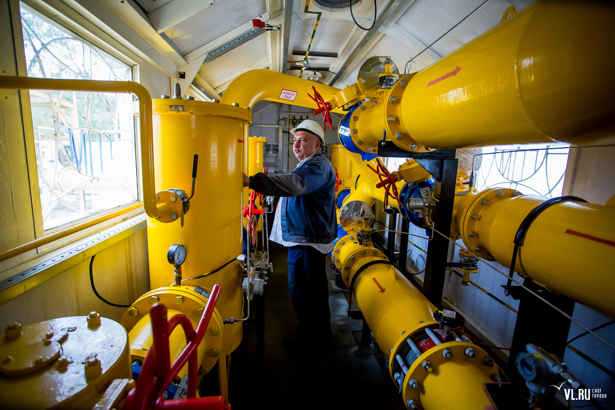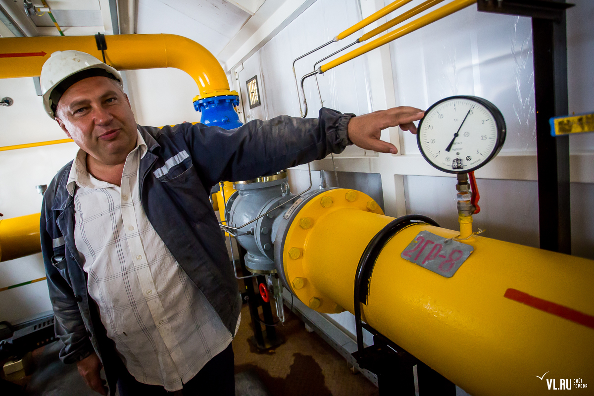 Сергей Харёв показывает нам газорегуляторный пункт. Сюда, минуя задвижку, газ под давлением 6 кг/см поступает, проделав долгий путь по газопроводу «Сахалин — Хабаровск — Владивосток». Работает ГРП в автономном режиме. Разве что вахта с дежурным химиком раз в сутки, в начале смены, поводит контрольный осмотр, берет анализы – проверяют загазованность. По телефону, что висит в отделении КИП — контрольно-измерительных приборов — старший машинист раз в сутки передает, что все в порядке, нет утечек и все показатели в норме. В случае аварийной ситуации клапаны безопасности закрываются автоматически.