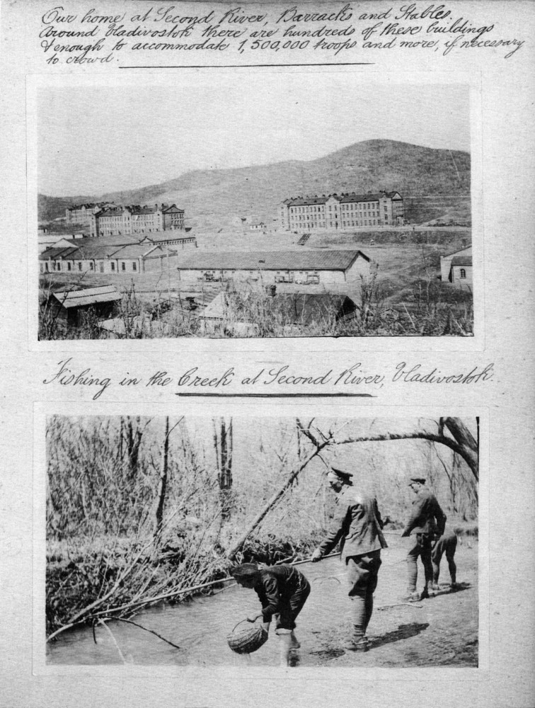 «К исходу дня берега речки и берег залива у устья были завалены живой и уже засыпающей рыбой, над которой бесновались чайки. Утром весь гарнизон принялся за "рыбалку": ведрами, тазами, кастрюлями и просто корзинами солдаты черпали из реки рыбу, после чего создавали дикую толчею в полевых кухонь... Тонны корюшки лежали на берегу и под жарким майским солнцем начали источать тухлый запах. Командование, прознав об этом, пришло в ужас: военный министр вот-вот явится, а тут такое безобразие! Получив нагоняй, весь личный состав гарнизона стал спешно прибирать берега, вывозить и закапывать рыбу в дальнем распадке в сопках. Только управились — нагрянул военный министр Сухомлинов со свитою. В подразделениях и на территориях все сияло, но высокий гость из Петербурга, прибыв на Вторую речку, даже не удосужился выйти из машины к вытянувшимся "во фрунт" войскам гарнизона, чем вызвал недоумение офицеров и низших чинов. У всех нас, офицеров, такая "проверка" готовности войск к войне вызвала много вопросов и кривотолков, а сам военный министр весьма низко пал в наших глазах...» — писал офицер.