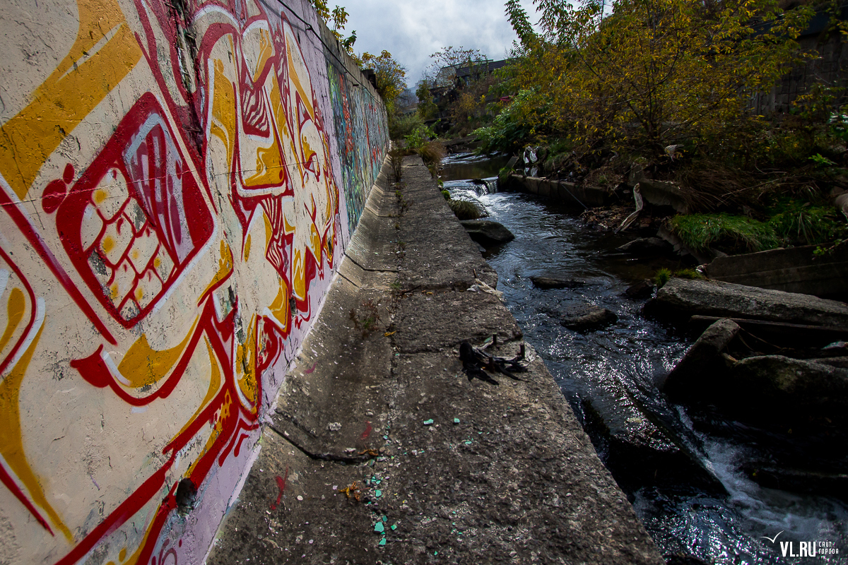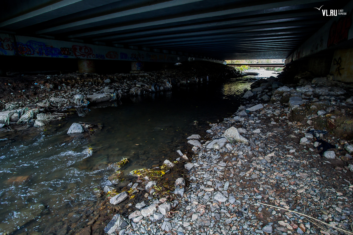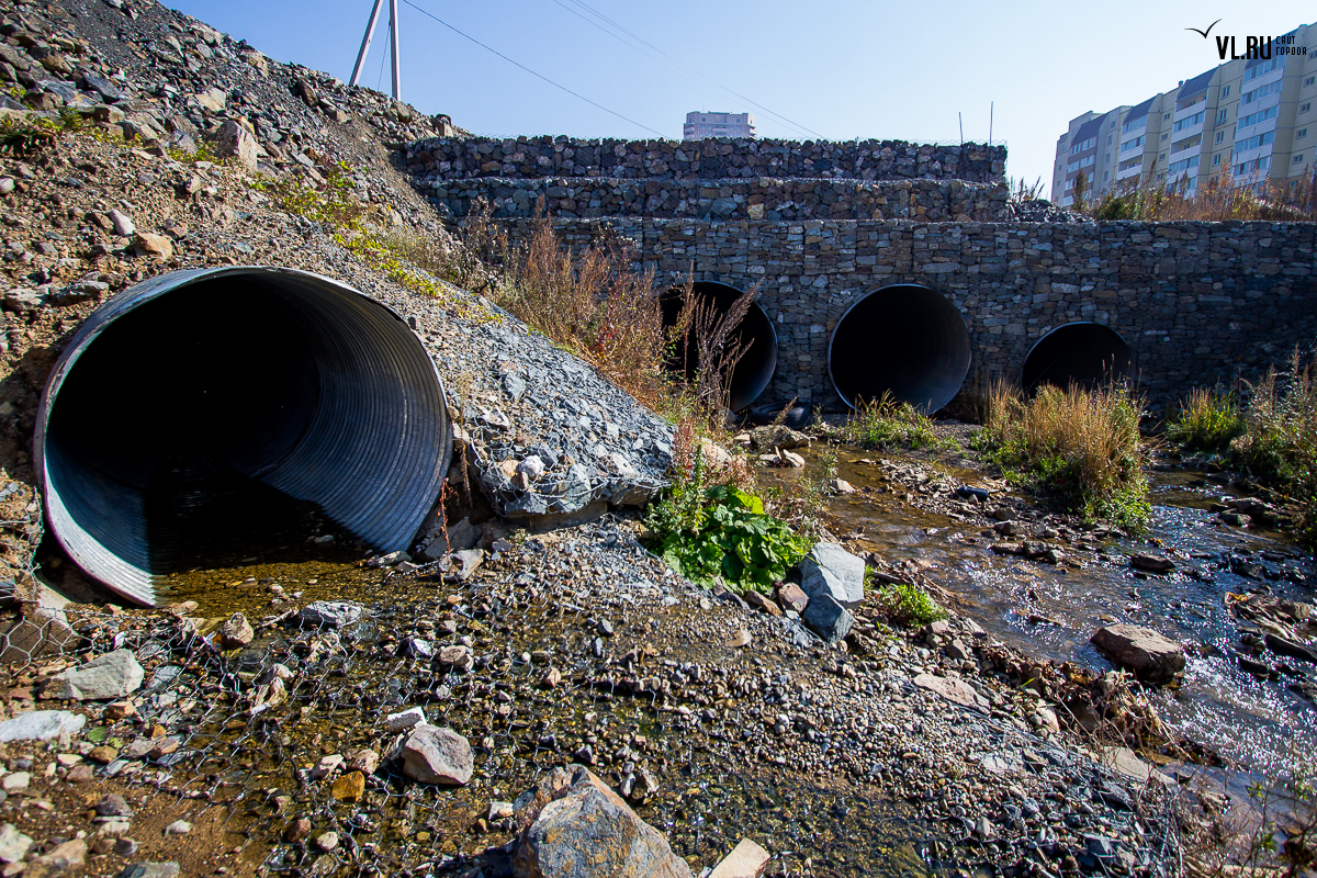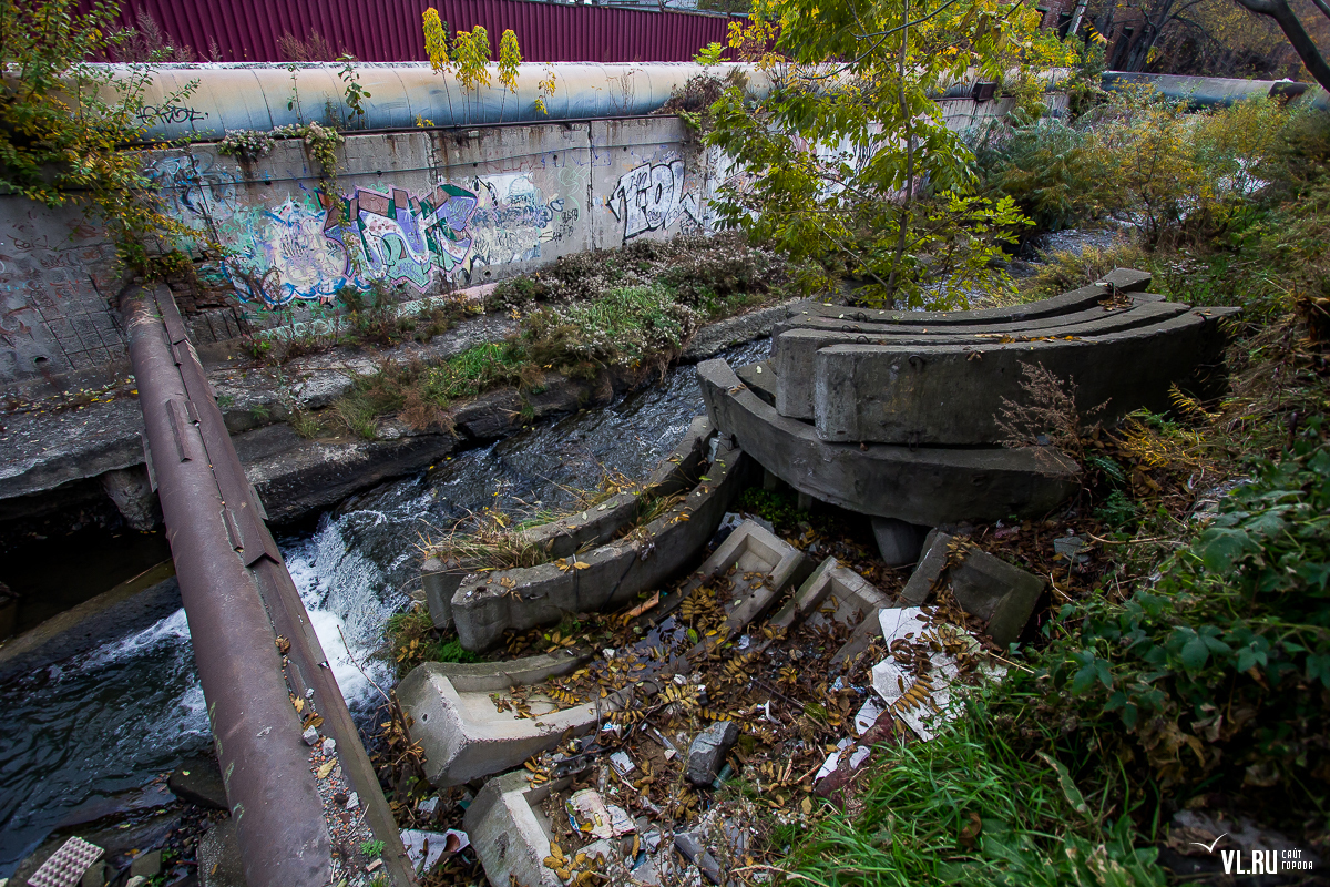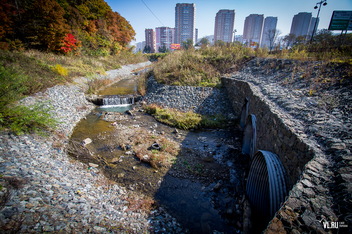 К слову, с самой рекой проектировщики поступили более чем жестоко — ее берега заковали в бетон (местами плиты до 3-4 метров) и вывели в русло канализационные стоки со всего жилмассива. Речка обмелела, дно заилилось, на берегах скопились горы мусора. К большому сожалению, сегодня в ее водах нет ни карасей, ни гольцов, ни красноперок, ни горбуши. Как, впрочем, нет и той реки, куда можно было бы входить на килевом вельботе — ее бассейн, за исключением незначительного участка в верховьях реки, почти полностью занят инфраструктурой. Хотя в период тайфунов эта водная артерия все еще превращается на несколько дней в бурный поток, но несет в море камни, гальку, песок, куски деревьев и разные отходы, над которыми летают в поисках пищи стаи чаек.