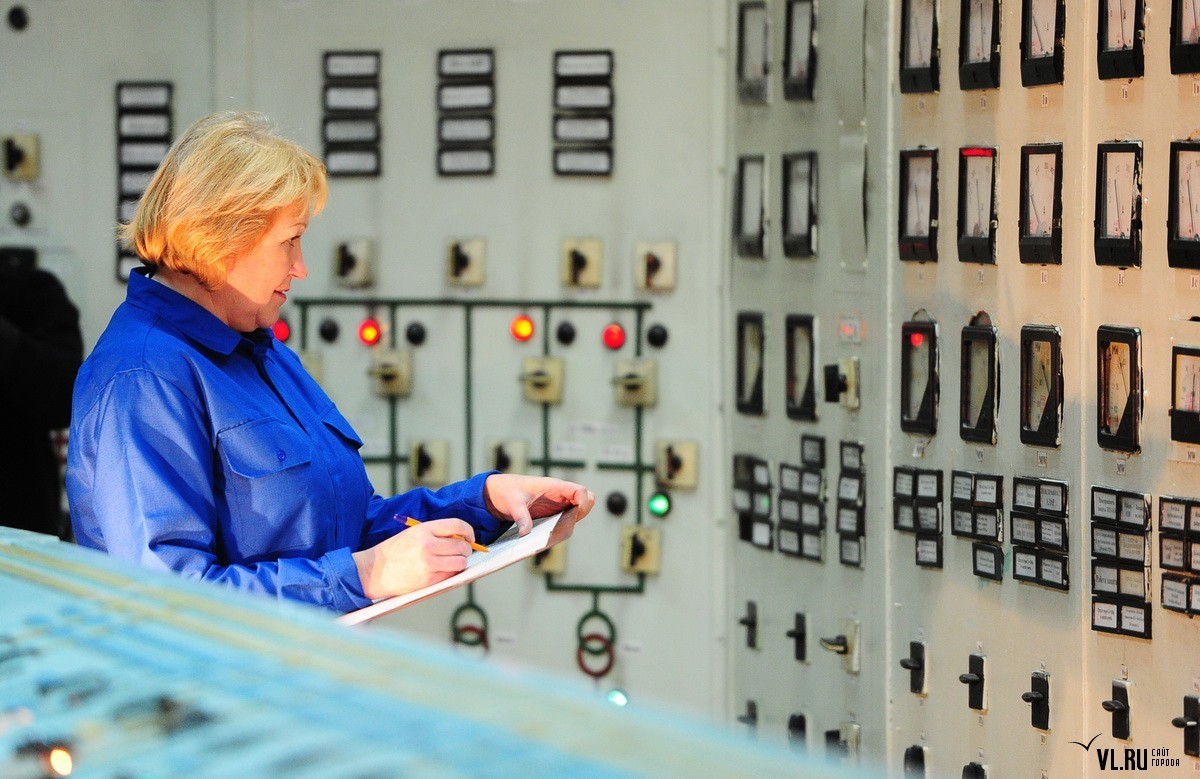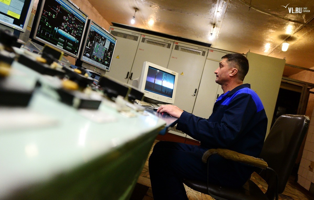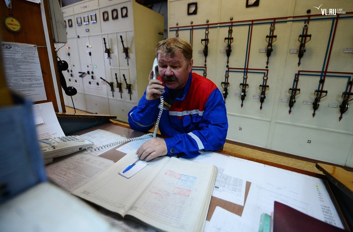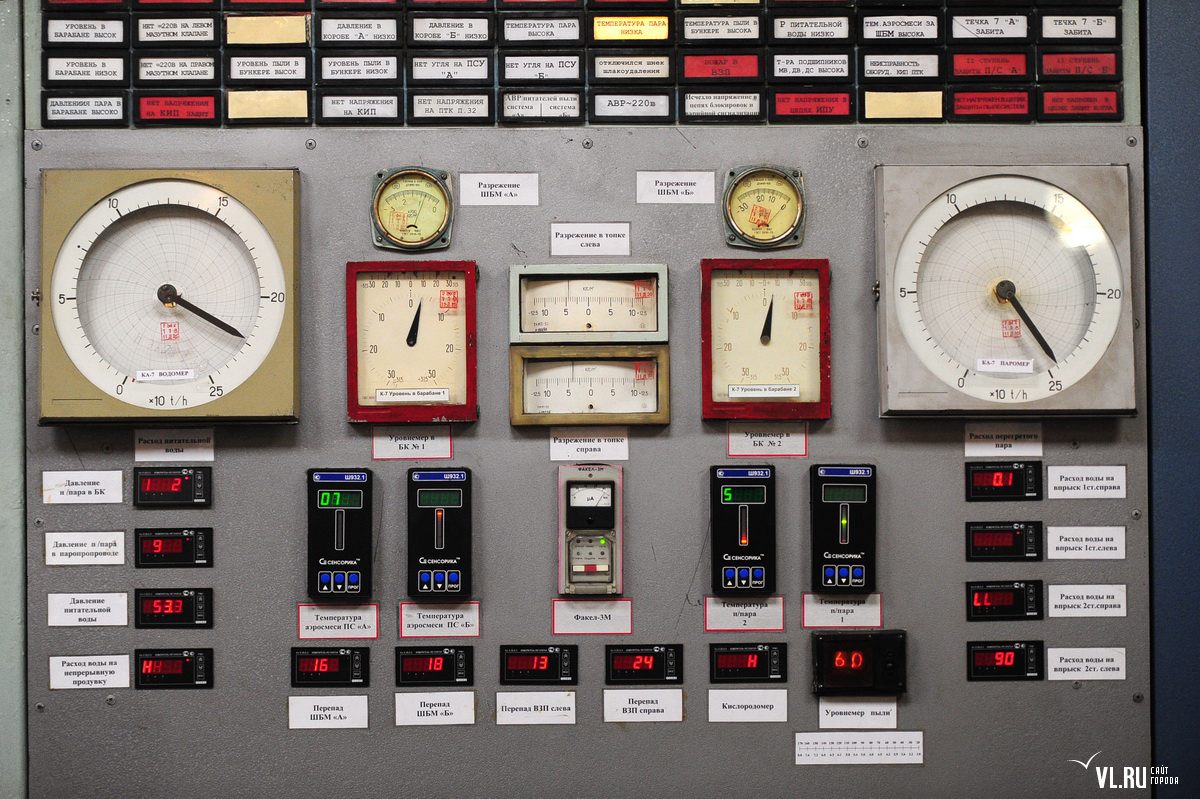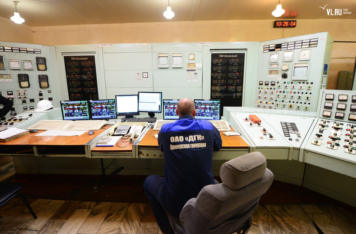 Съемочной группе VL.ru с экскурсией помог заместитель главного инженера по эксплуатации Сергей Сериков, первым делом направившийся на главный щит станции, где дежурный электромонтер осуществляет надзор за режимом работы основного оборудования. Этот специалист контролирует выполнение графика режима нагрузок и напряжения и дает команды всем тепловым щитам. Из электроцеха он взаимодействует со всеми другими основными подразделениями: цехами топливоподачи, котельным, турбинным, химическим, теплоавтоматики и измерений. А вообще оперативный персонал подчиняется начальнику смены станции, который и отвечает за весь процесс в целом.