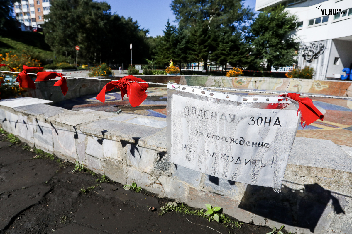 «В том виде, в котором его спроектировал Антонио Михе, он опасен для детей, потому что дети легко падают сейчас, когда он не заполнен водой, очень часто происходят падения, и прокуратурой нам предписано устранить», – сказала Оксана Соловьева, директор МБОУ ДО «Владивостокский городской Дворец детского творчества».