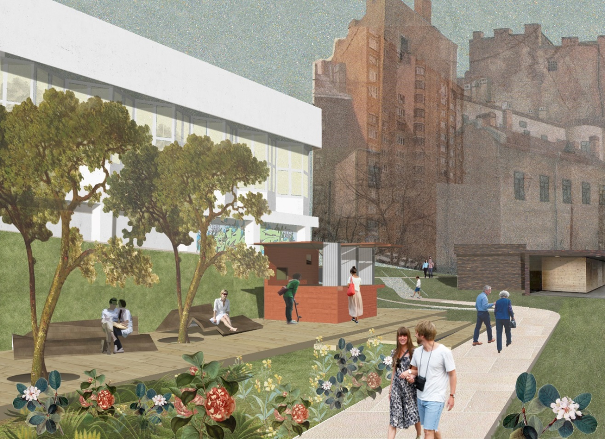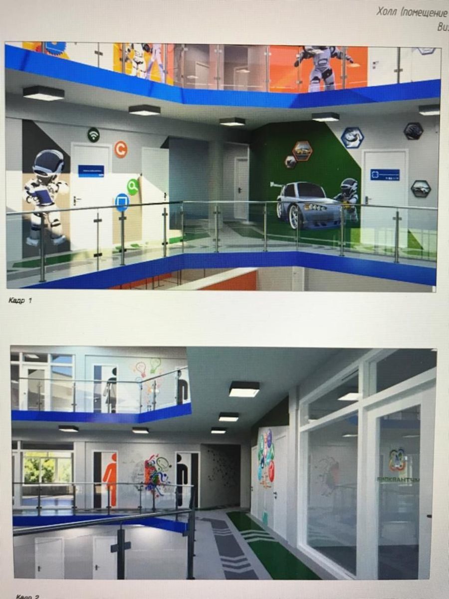 Правда, мозаичный бассейн в административном корпусе превратится в подиум с искусственной травой. И латунного корабля на новых эскизах не видно. На стенах и на полу появляются кричащие раскраски под роботов и машинки. Металлические ограждения с широкими деревянными перилами тоже уничтожаются. Их заменят хром и стекло. Мозаичный купол планетария и люстра «Космос» в проекте интерьера не показаны.