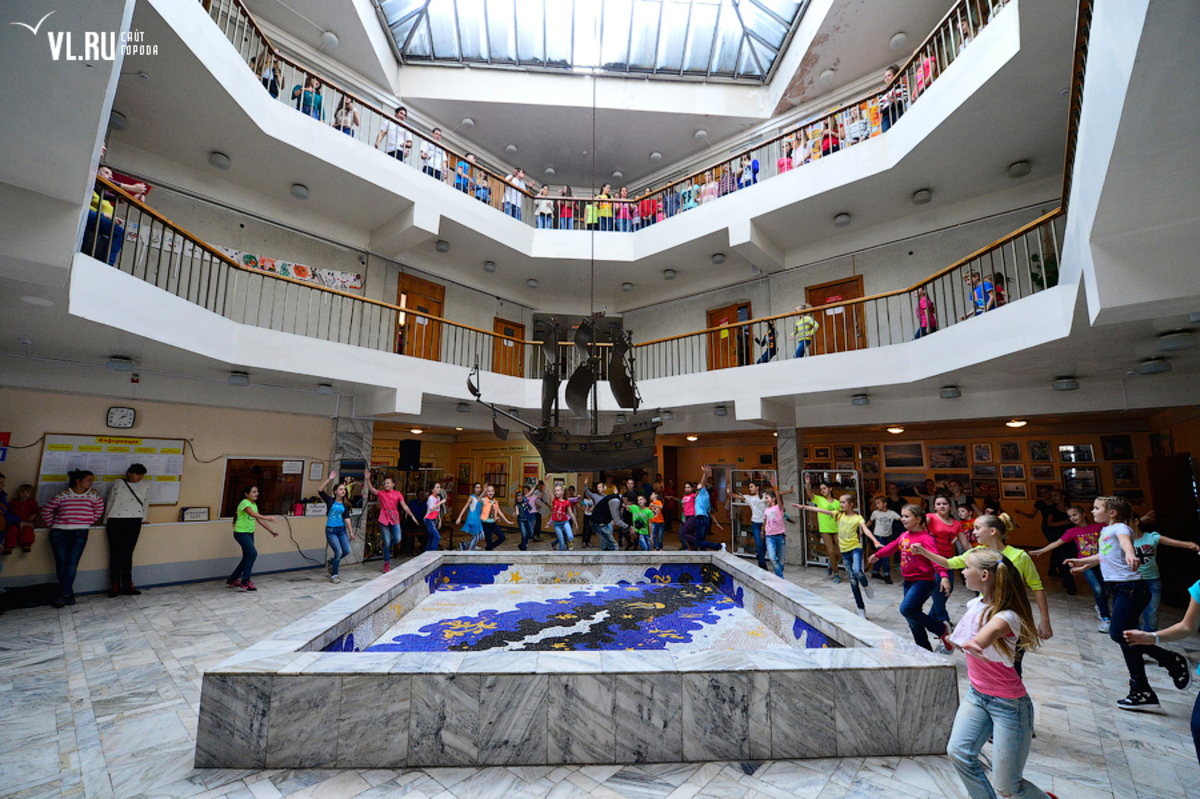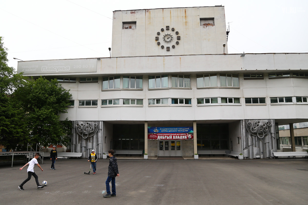 В том виде, в котором создали его талантливые архитекторы, жители Владивостока наблюдали Дворец пионеров до прошлого года. Несмотря на несколько обтрепанный внешний вид, ансамбль оставался практически в своем первозданном облике. Фонтан, правда, давно не функционировал и облупился.