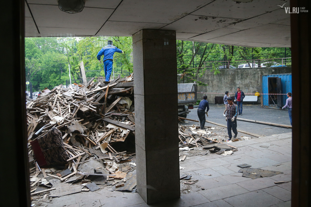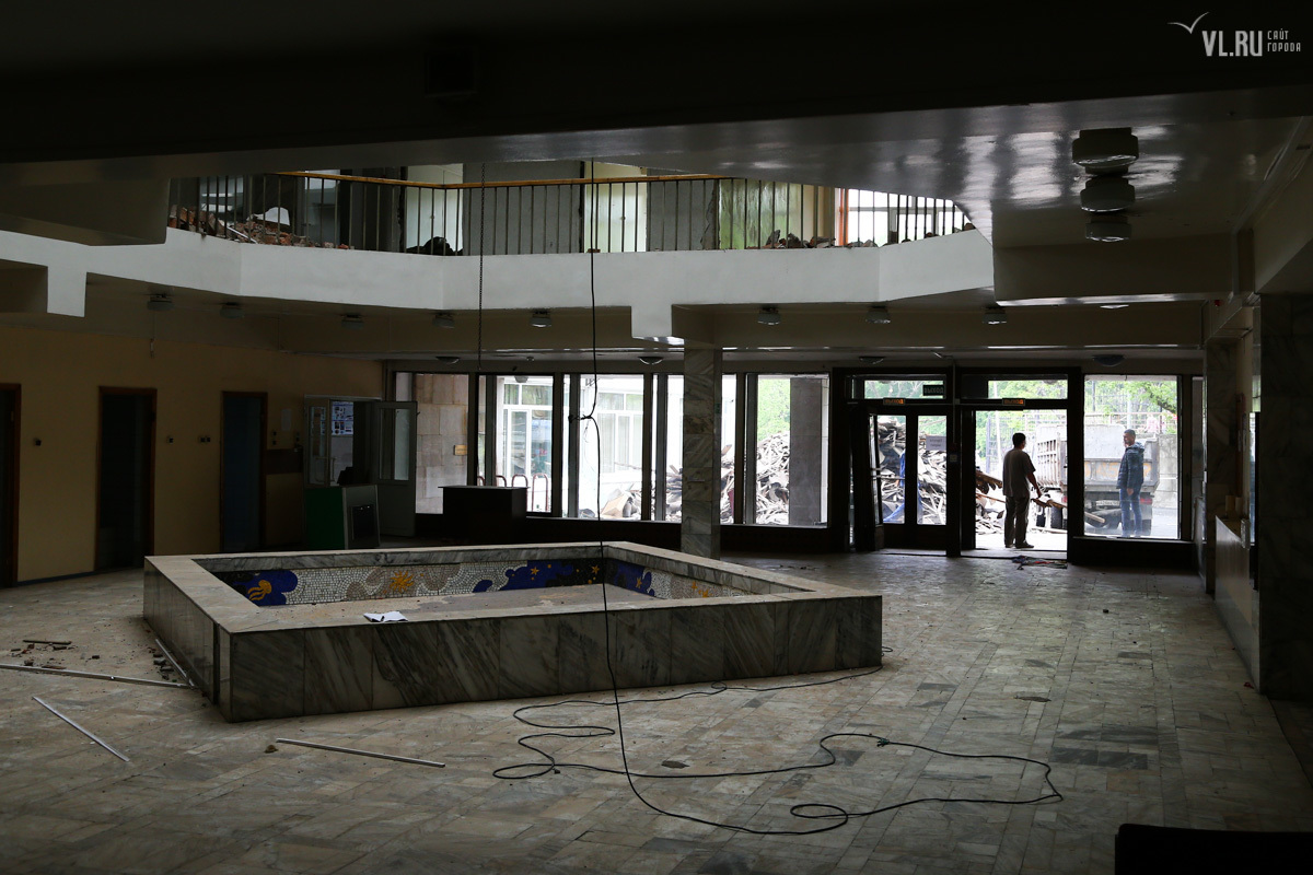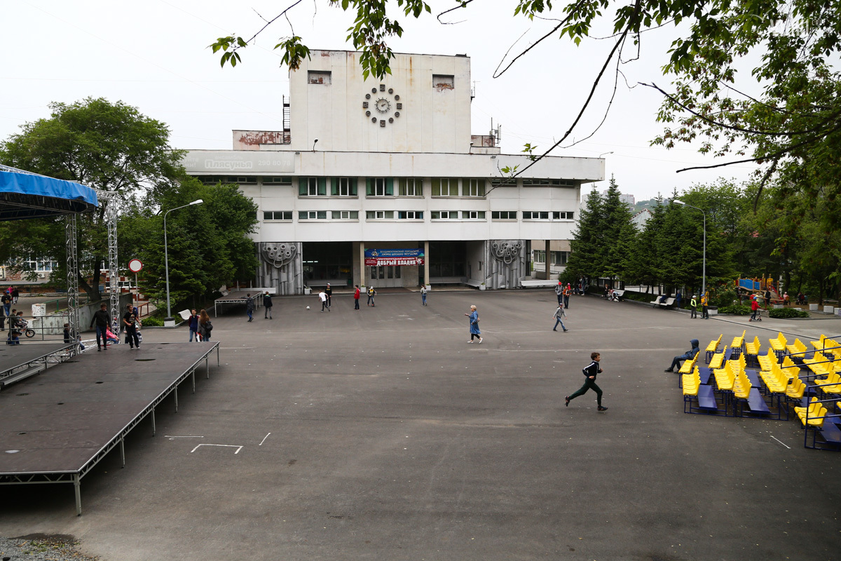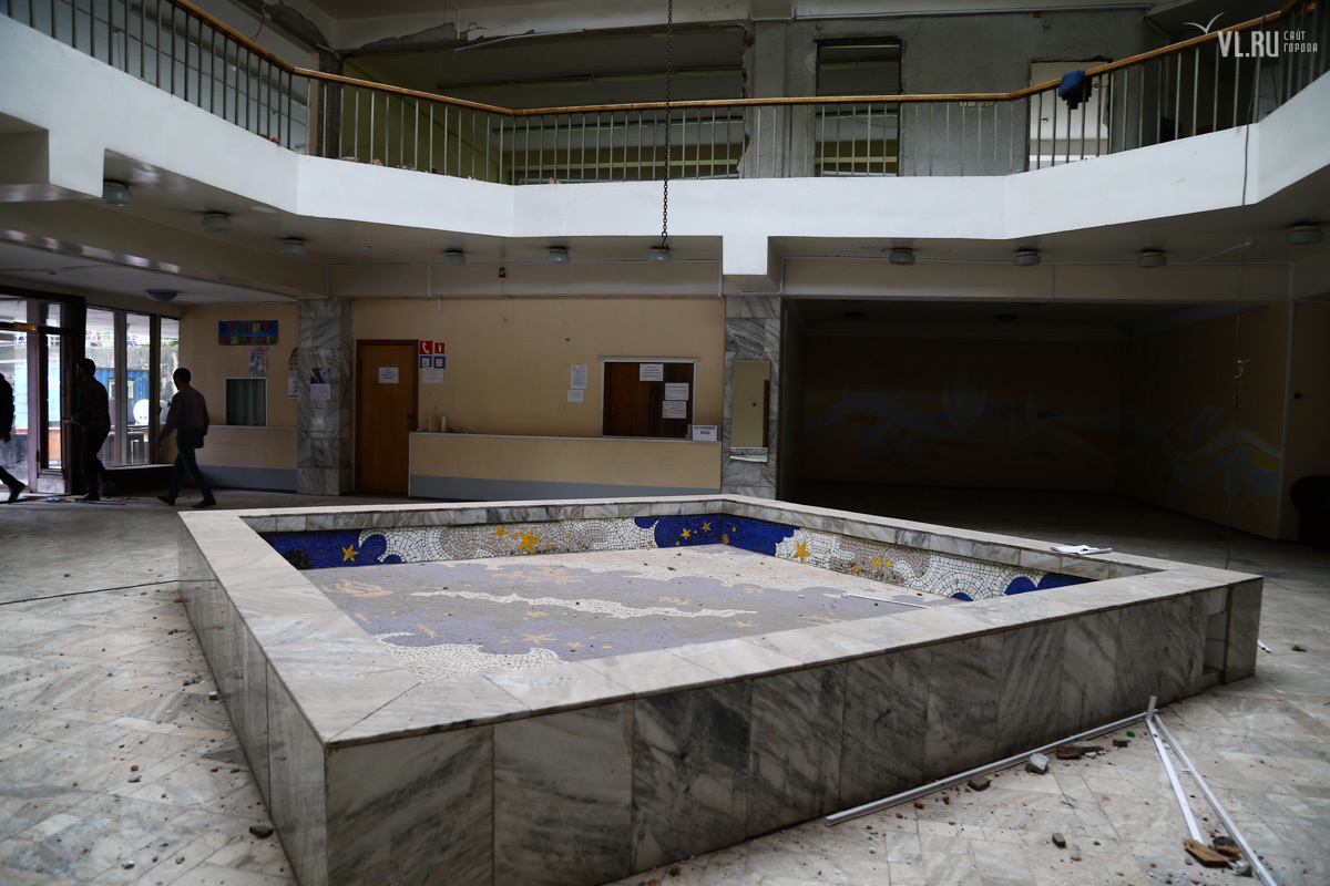Первой в этой «культурной войне» пала территория Дворца пионеров. Мозаичный фонтан-бассейн, оформлявший главный вход, работал полигоном судомоделистов и детской площадкой. В заполненном бассейне техотдел испытывал надводные и подводные модели, организовывал соревнования. Спустив воду, воспитатели проводили в бассейне детские зарядки и игры, рассказывает ИА Regnum. Его закатали в асфальт, несмотря на протесты значительной части жителей Владивостока.