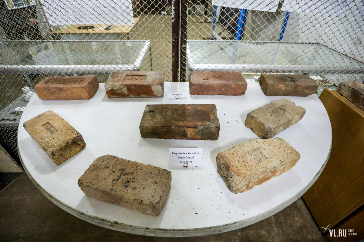 «В мае 2018 года территория погреба уже была в муниципальной собственности, в доверительном управлении у муниципального спортивного центра, – рассказывает Святослав Булавко. – Я выбрал одно из пяти тоннельных хранилищ погреба для размещения экспозиции. Выкинул хлам, вымел сор и отпавшую штукатурку, восстановил и обновил освещение. Одним из побочных эффектов моей «новой жизни» стало коллекционирование старых клейменных кирпичей Владивостока и Приморья, которым я занимался с 2010 года. Именно эта коллекция и стала первым «комплексным экспонатом», который заехал в музейное хранилище. Да, это не совсем крепость, хотя это напрямую связано с историей Владивостока и к крепости частично имеет отношение».