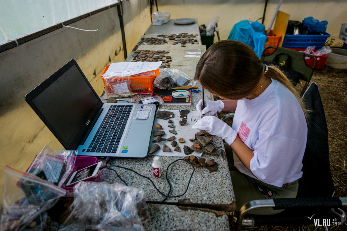 Непосредственно научных работников здесь 12 человек, в основном это сотрудники Учебно-научного музея ДВФУ и Департамента археологии и этнографии Школы искусств и гуманитарных наук. Большинство археологов – студенты и аспиранты-историки ШИГН ДВФУ, также в работах принимают участие студенты Новосибирского государственного университета. До прошлой недели здесь гостили школьники из уссурийского археологического клуба «Резерв» и тоже помогали учёным в работе. Всего в раскопках принимает участие более 50 человек.