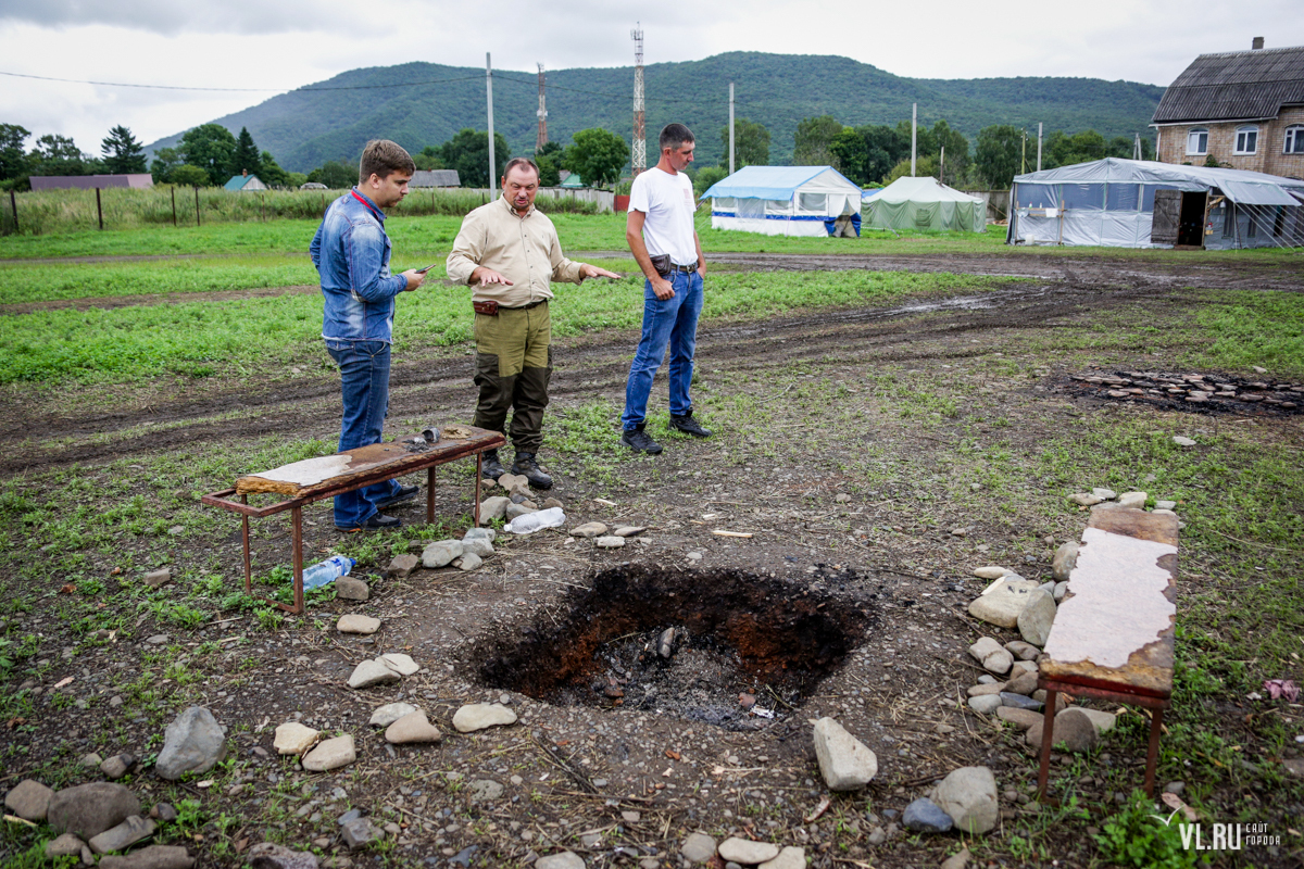 К сожалению, 31 августа, когда на месте побывали корреспонденты VL.ru, то и дело шла морось, поэтому работы не велись. В плохую погоду отличить тёмные участки (зачастую это следы человеческой деятельности и указание на артефакт) от светлых практически невозможно. Ещё одна большая проблема – грязь.