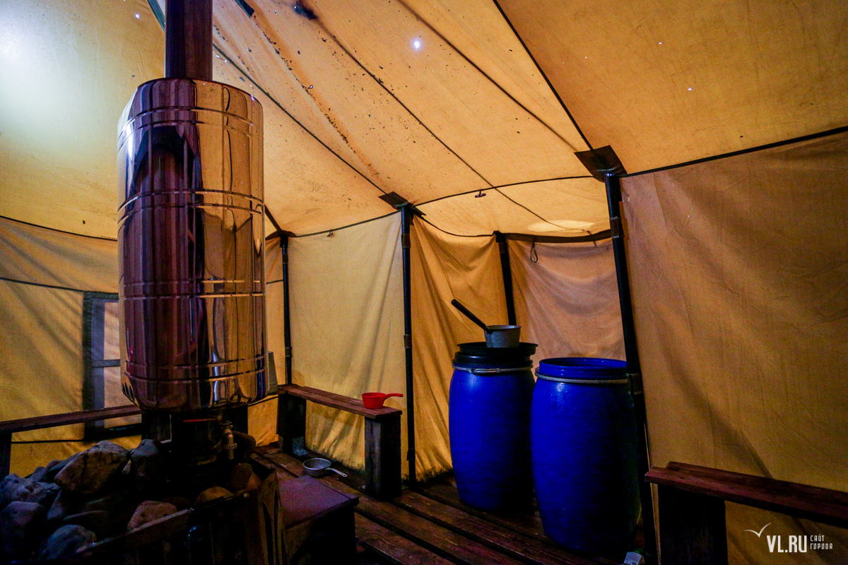 Живут участники экспедиции для полевых условий относительно комфортно. Средства гранта позволили арендовать на два месяца 10 контейнеров, в каждом из которых живут по четыре человека. Участники экспедиции называют их кубриками. Рядом находится большой костёр с лавочками и навесом — это центр лагеря.