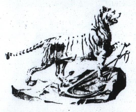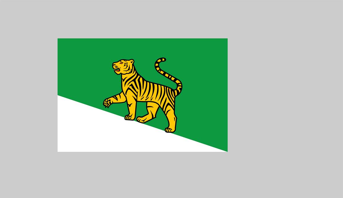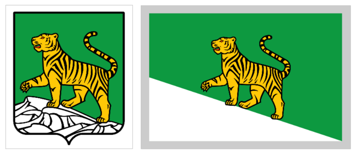 Первый утверждённый герб. Тигра повернули головой на запад, к столице