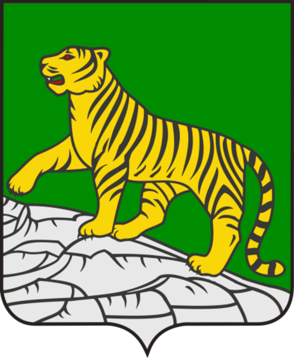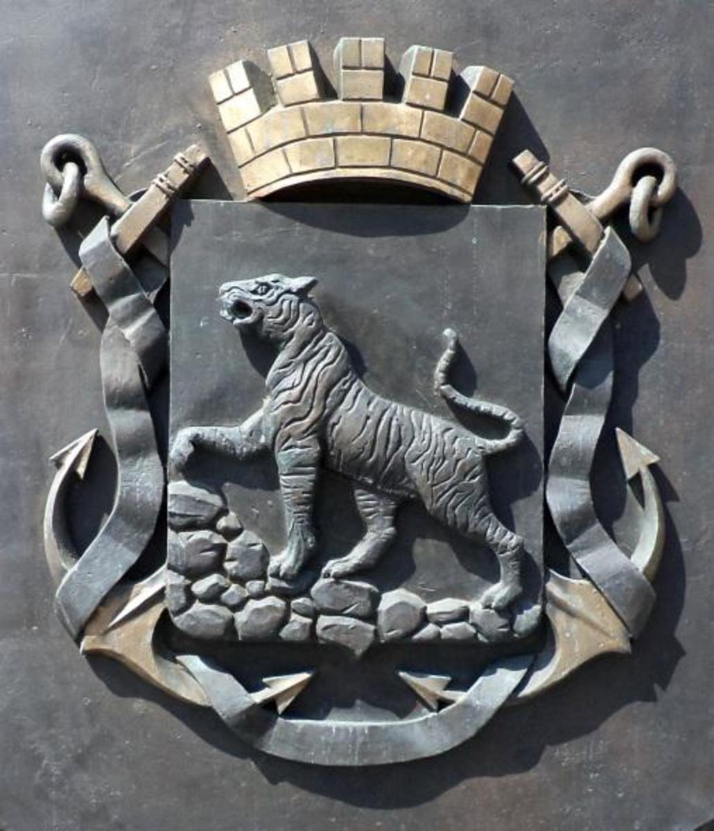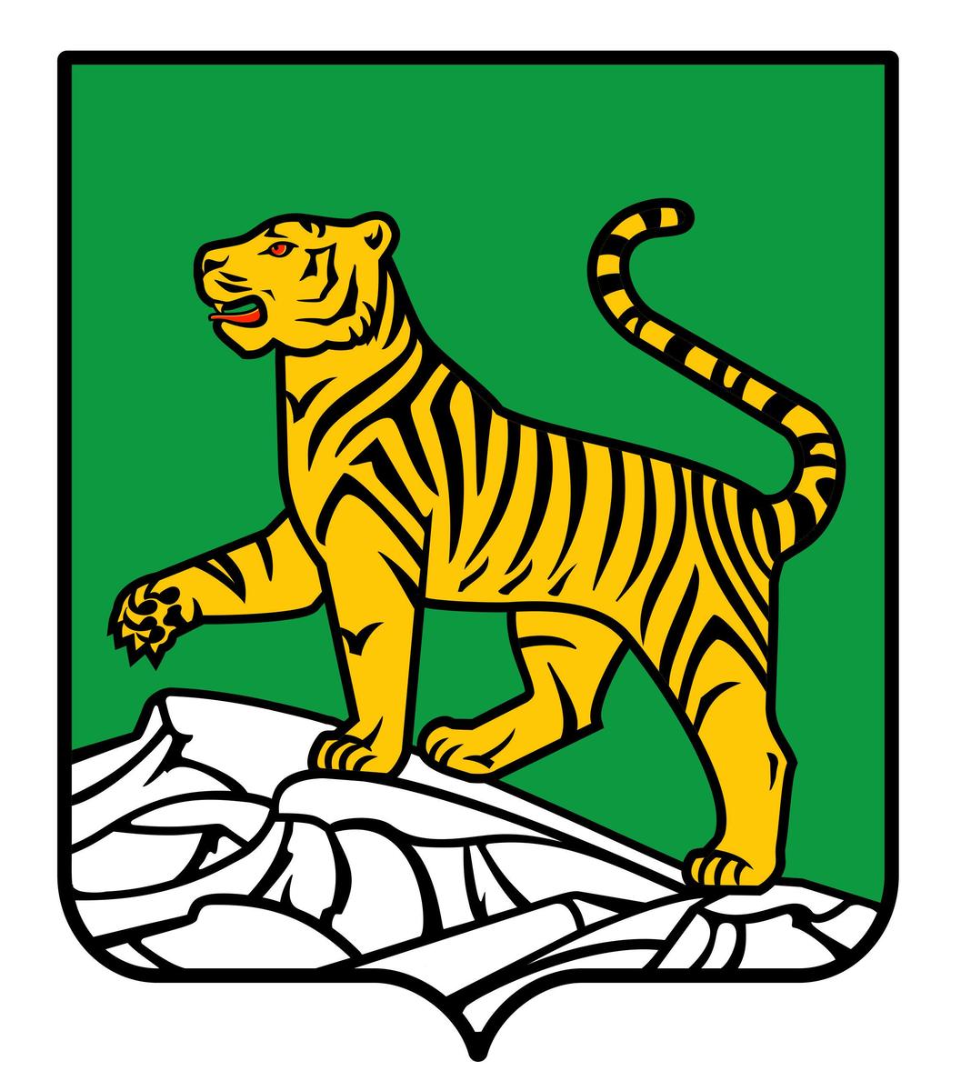 «В зелёном поле щита золотой тигр с червлёными (красными) глазами и языком, идущий по скалистому серебряному склону вправо, подняв переднюю правую лапу» – с таким описанием герб Владивостока был зарегистрирован в Государственном геральдическом регистре Российской Федерации под номером 984.