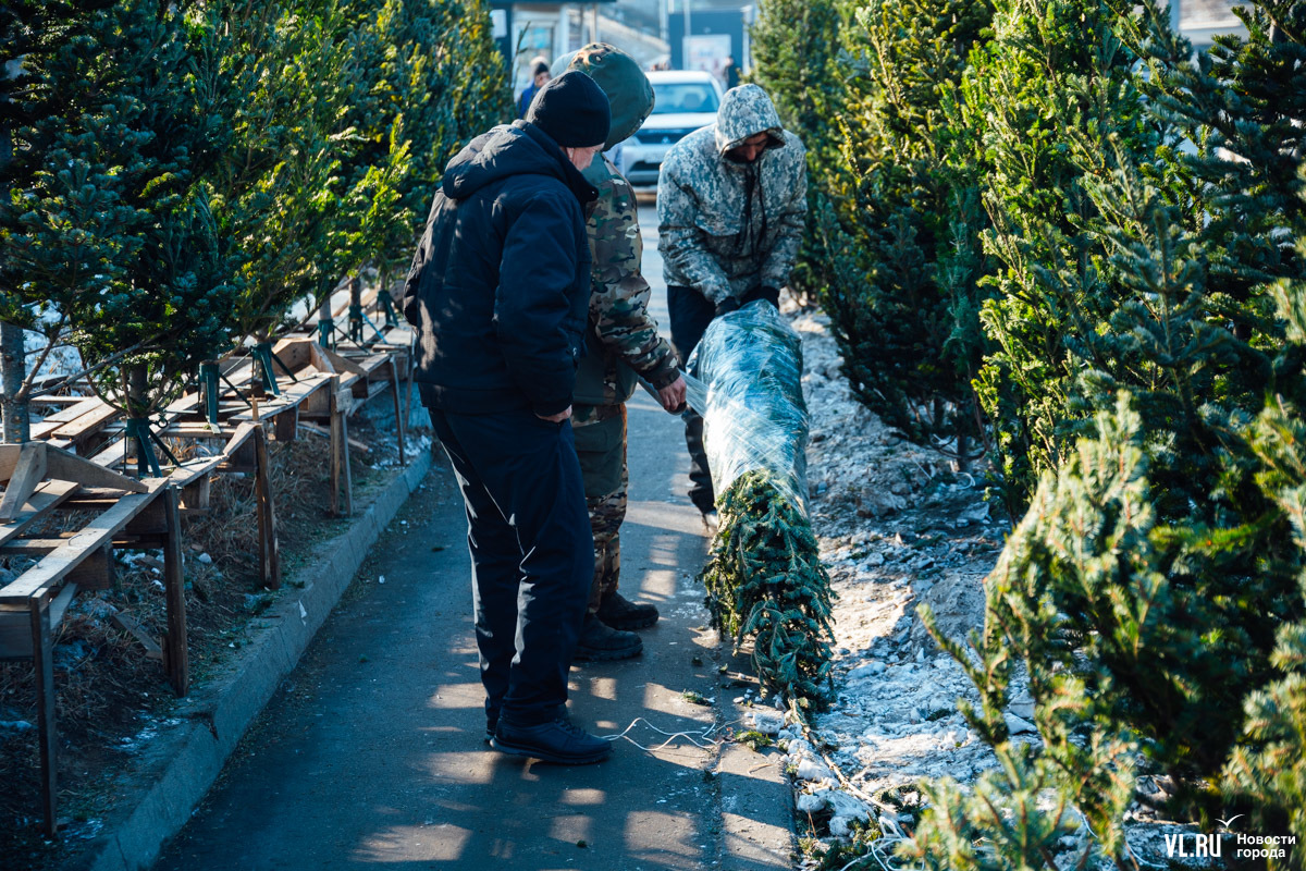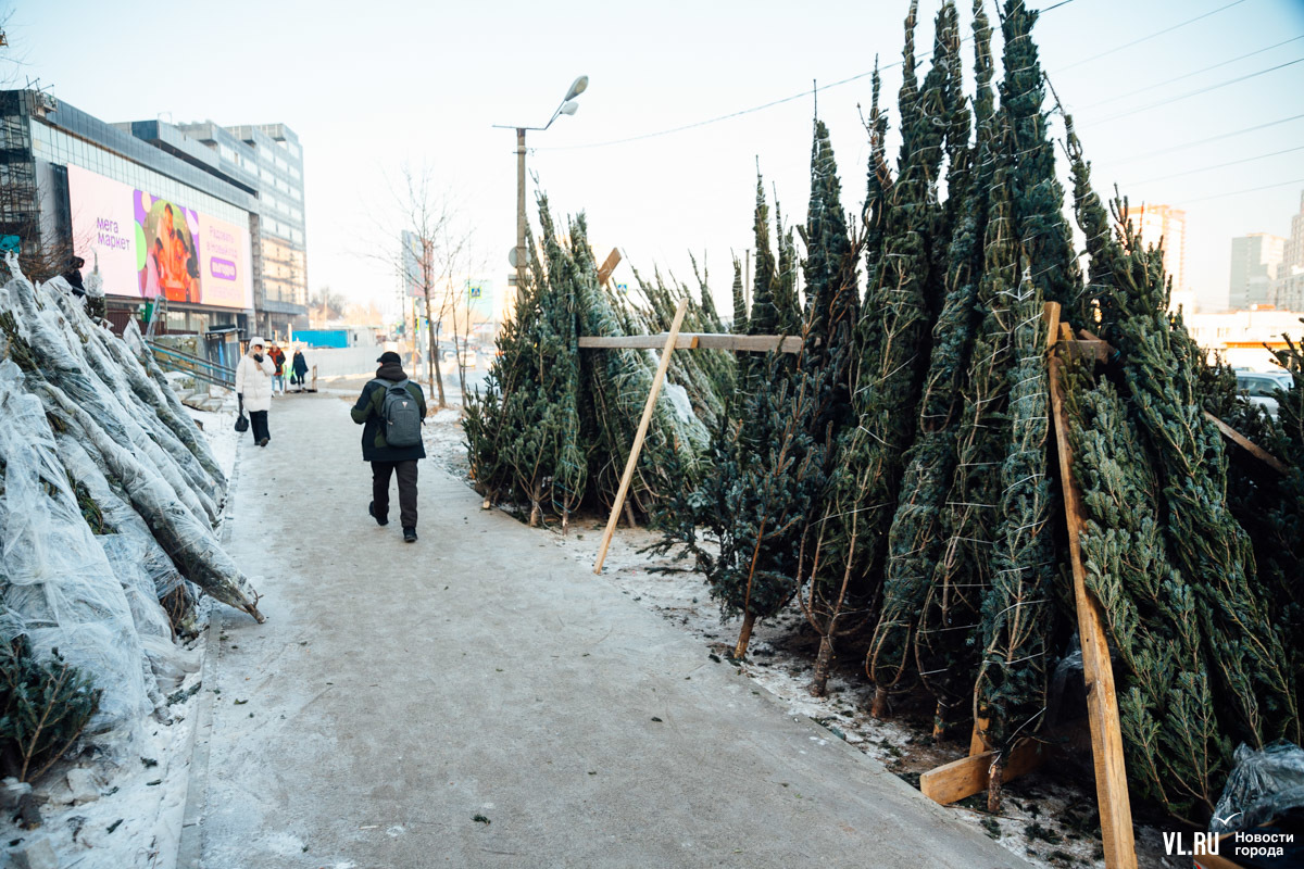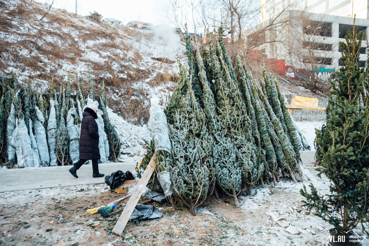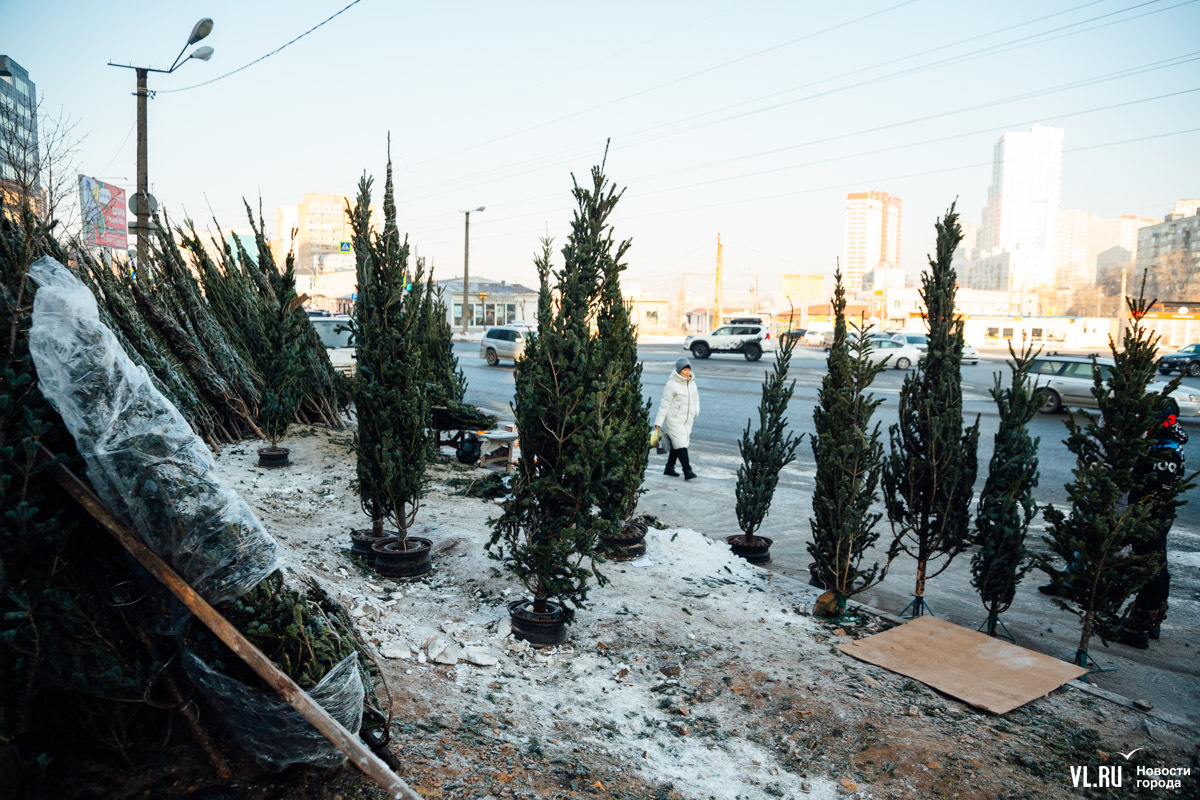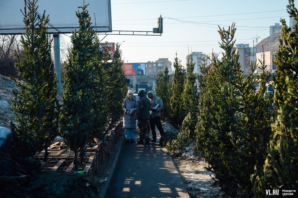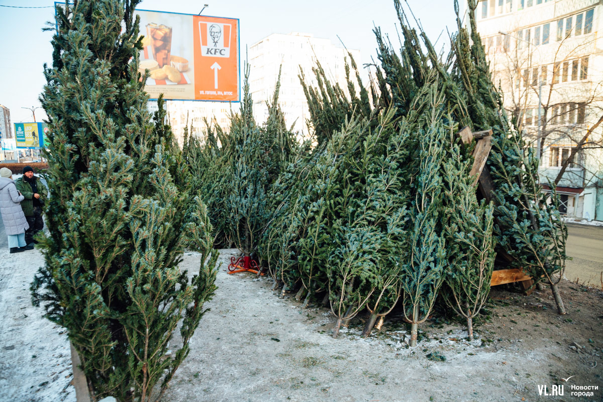 Корреспонденты Новостей VL.ru в понедельник, 25 декабря, проехались по нескольким ёлочным базарам на Красного Знамени, кольце Третьей Рабочей, Баляева и Тухачевского. Продают здесь пихту белокорую из приморской тайги. Ёлок по минимальным 3000 рублей, невысоких, для квартиры со стандартными потолками, мало. Те, что остались, в основном до 2,5 м за 4500-5000 рублей, продавцы говорят, что пушистые. Много высоких, но не очень пышных. Самые красивые пихты сейчас стоят 8000-10 000 рублей.