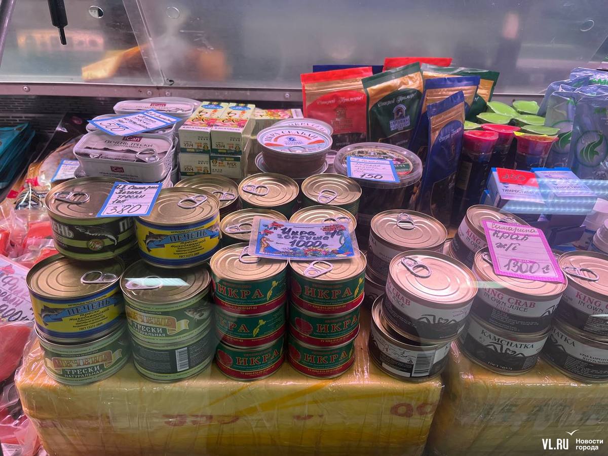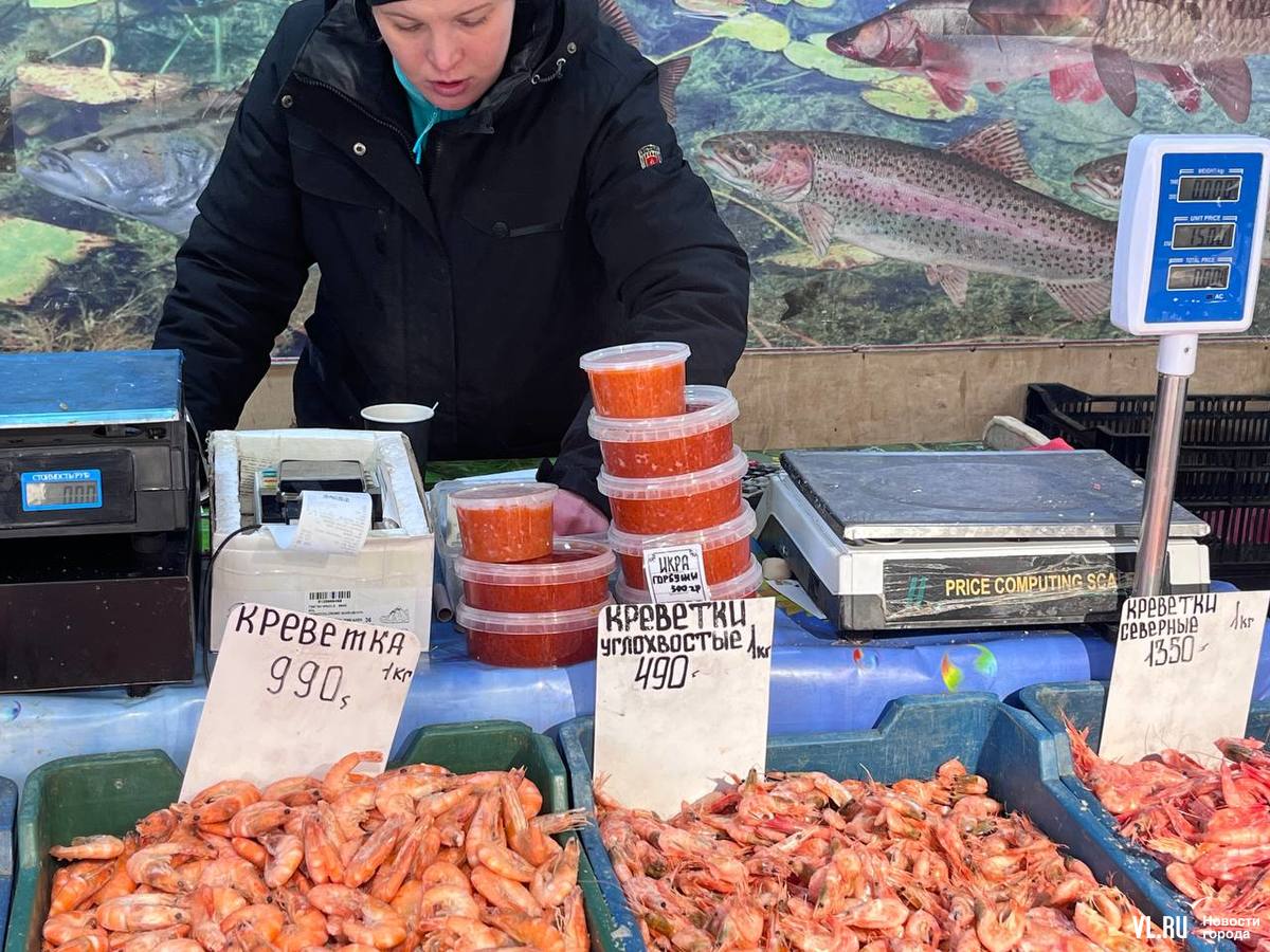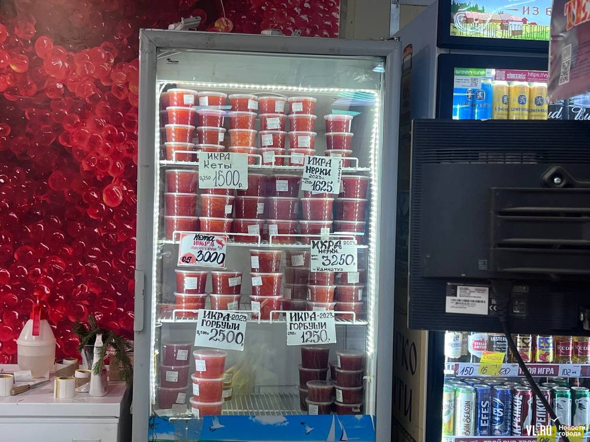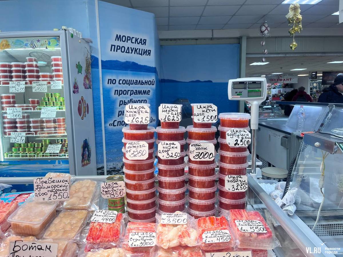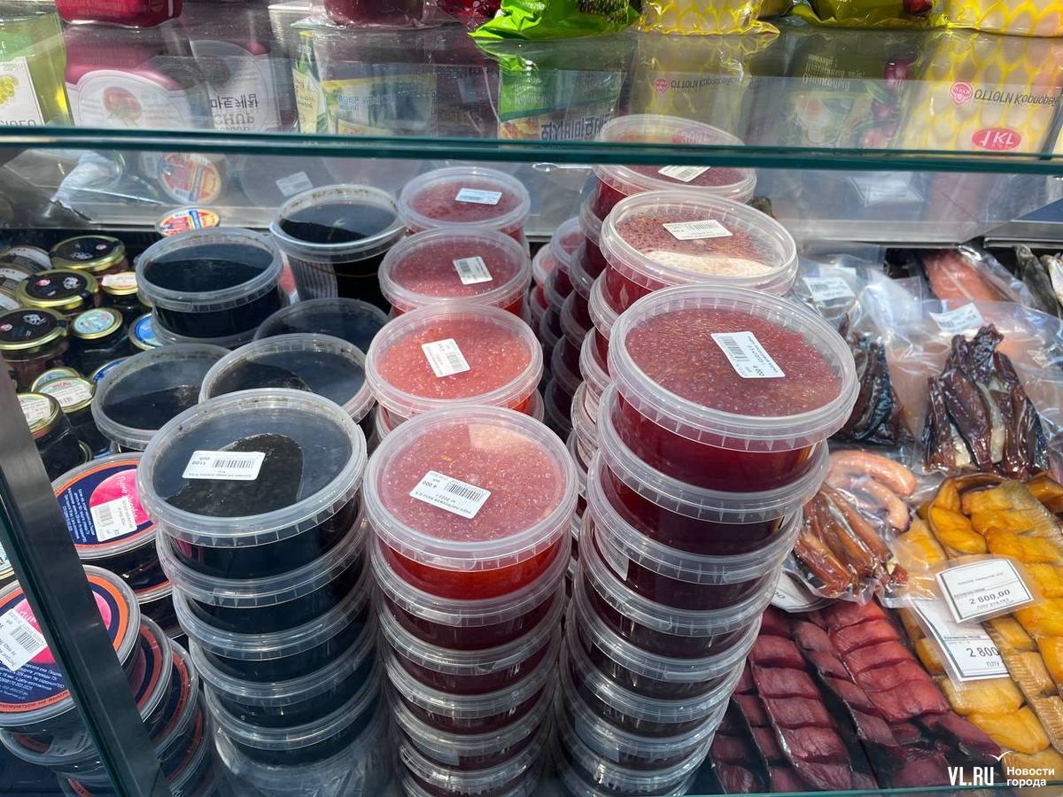 Традиционно самые высокие цены на Первореченском рынке. На прилавках стоят контейнеры по 500, 250 и 125 грамм. В среднем килограмм самой популярной, по словам продавцов, икры горбуши обойдётся в 7500 рублей. Самая дорогая икра кижуча, килограмм стоит около 9000 рублей.