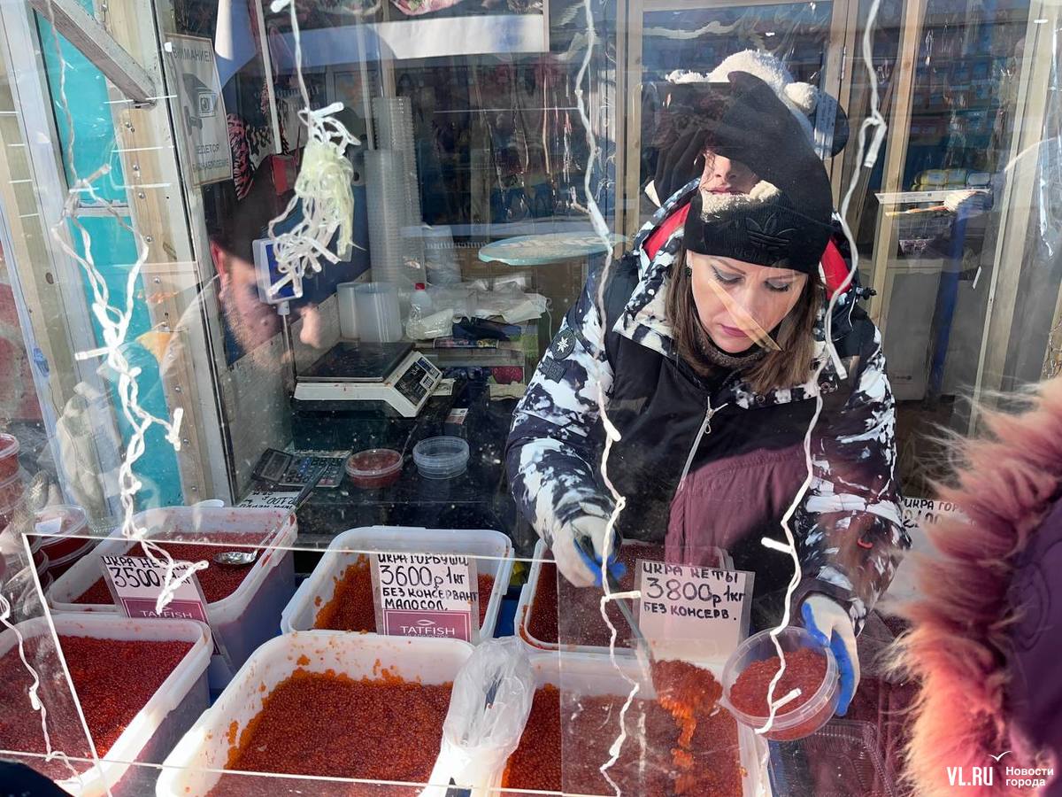 «Подорожала. В том году была 5200 кета. Кижуч и нерка были 6000. Сейчас, получается, 6500. Ну в среднем на 500 рублей поднялись цены. Сейчас пока по таким возят», — объяснила продавец одного из павильонов.