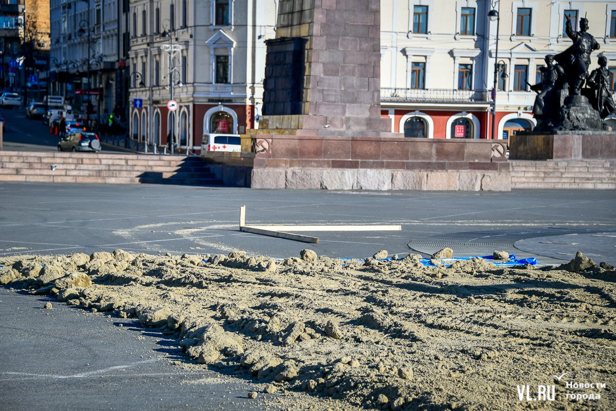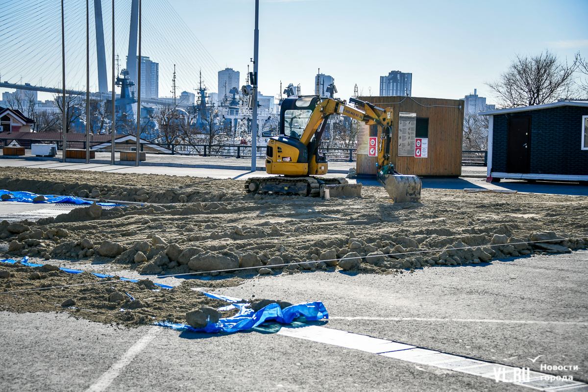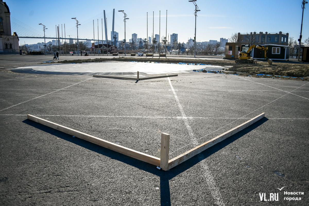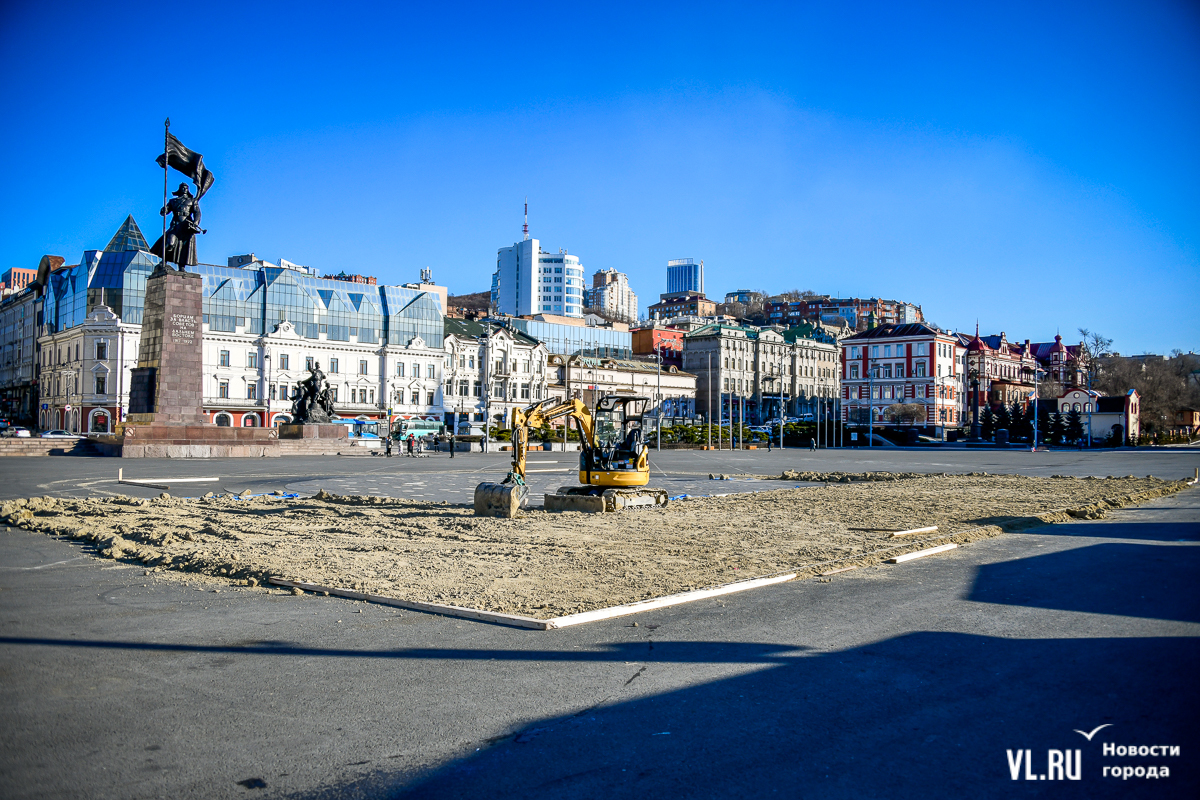 Вечером в понедельник, 2 декабря, рабочие привезли песок на центральную площадь Владивостока – это основание под будущий круговой каток. Сейчас активных работ здесь не ведётся, но на площадке уже стоит небольшой экскаватор и установлен павильон, в котором будет работать прокат коньков. В пресс-службе мэрии уточнили, что работы выполняет подрядчик, а весь новогодний городок планируют открыть через три недели.
