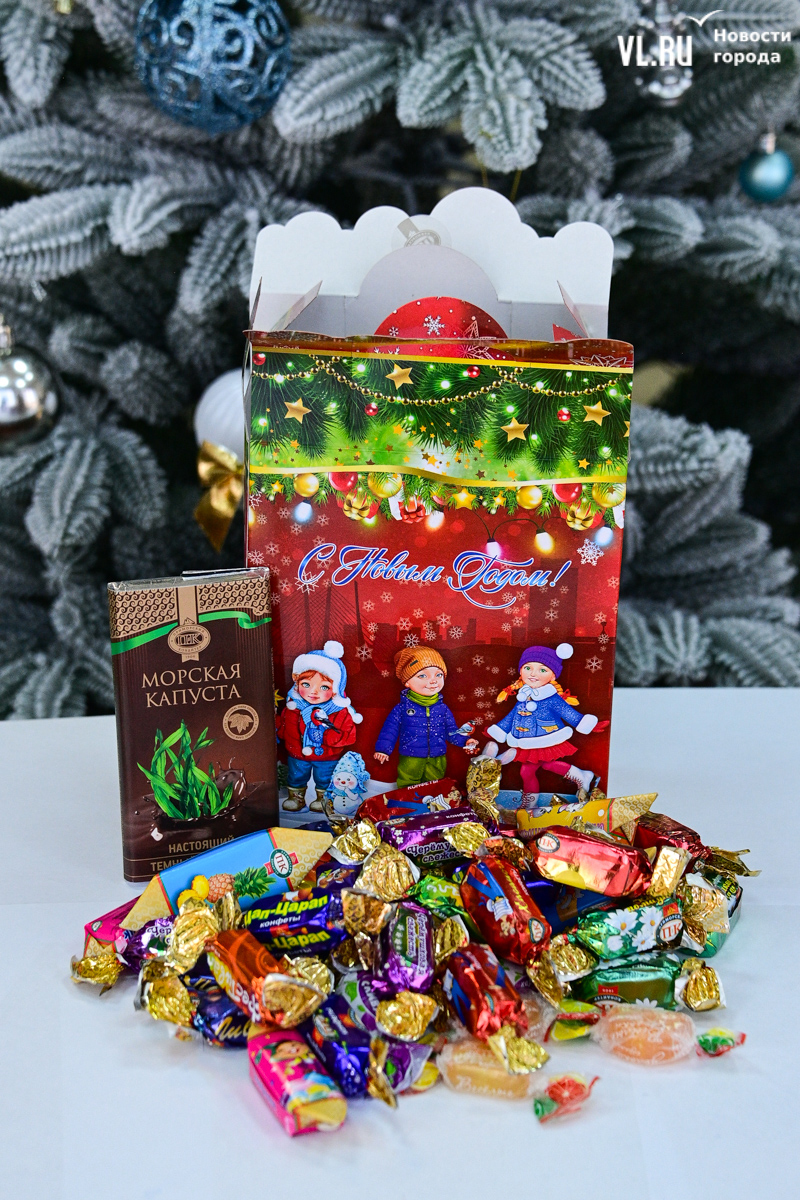 Юные жители Приморья начали получать новогодний подарок от губернатора. Редакция Новостей VL.ru изучила его содержимое и подсчитала, сколько стоил бы точно такой же, но собранный самостоятельно. Получилось, что изготовленный на «Приморском кондитере» подарок обошёлся бюджету Приморья в 371 рубль, а купленные в фирменном магазине такие же конфеты на развес обычному жителю Владивостока встанут в 547 рублей.