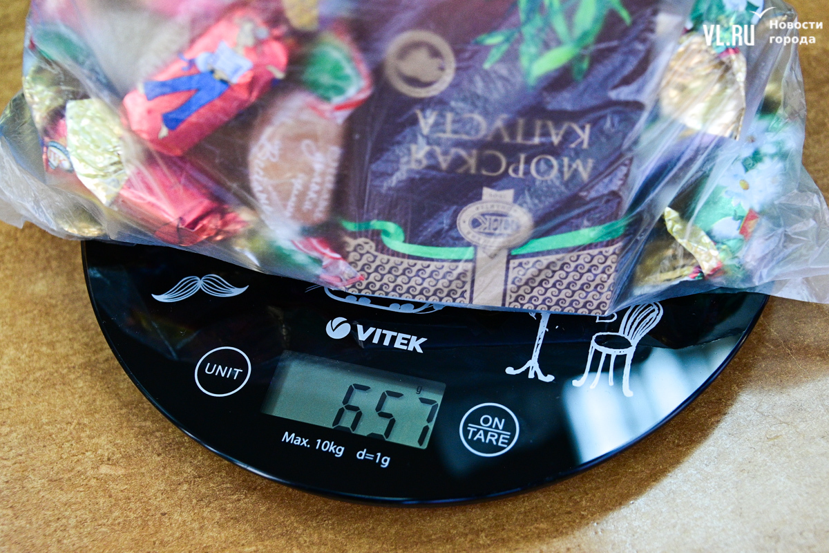 В одном из фирменных магазинов «Приморского кондитера» корреспонденту Новостей VL.ru получилось найти почти все позиции, но карамельки производит «Невский кондитер». «Гном-озорник» и «Мышек-норушек» мы считали по апрельским ценам, потому что до флагманского магазина они или не добрались, или уже закончились. «Кота-скорохода» и вовсе не получилось найти, так что он ушёл в ценовую категорию «Гномов-озорников». Разумеется, в стоимость не вошла коробка. Со всеми «но» цена подарка собственной сборки оказалась выше.
