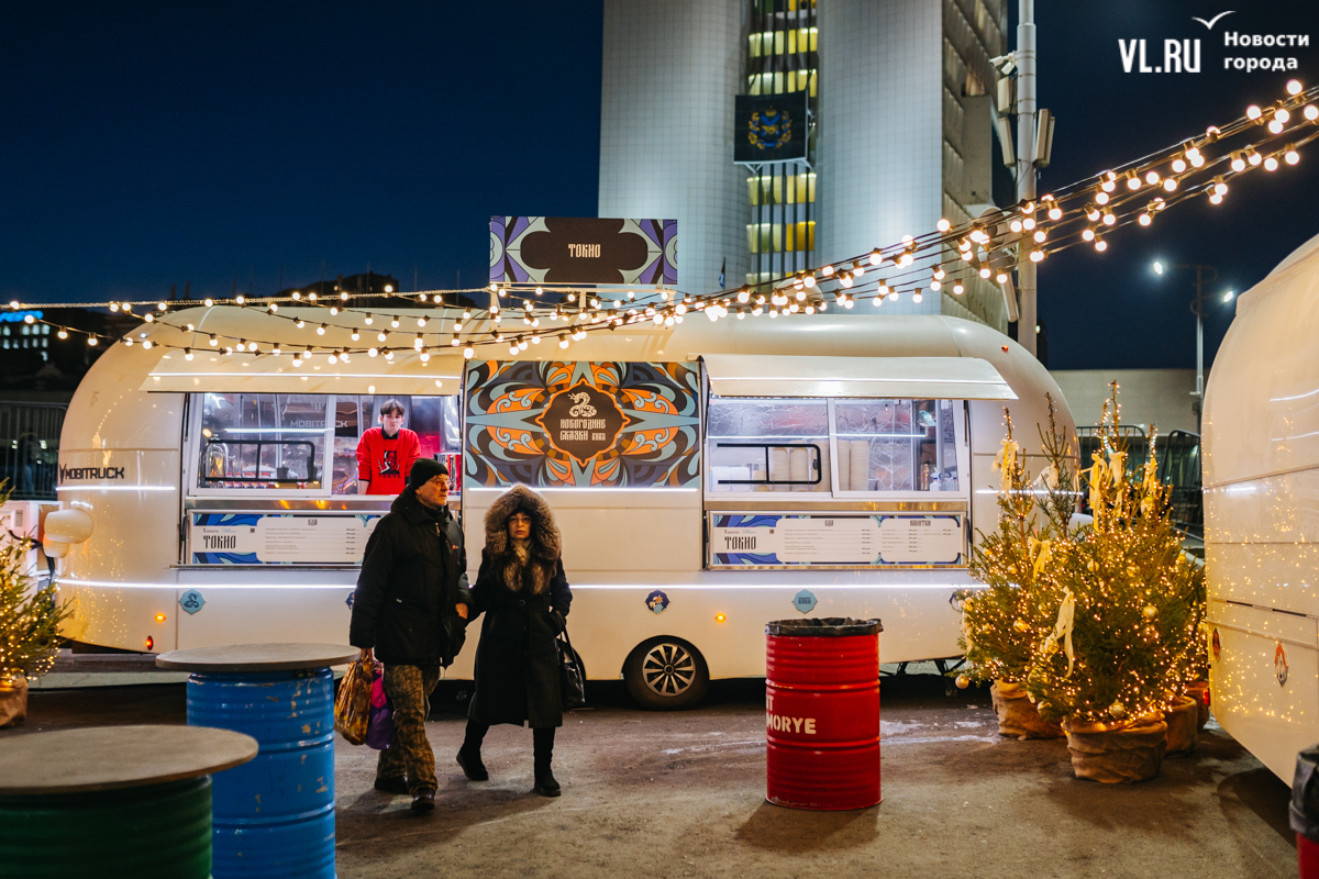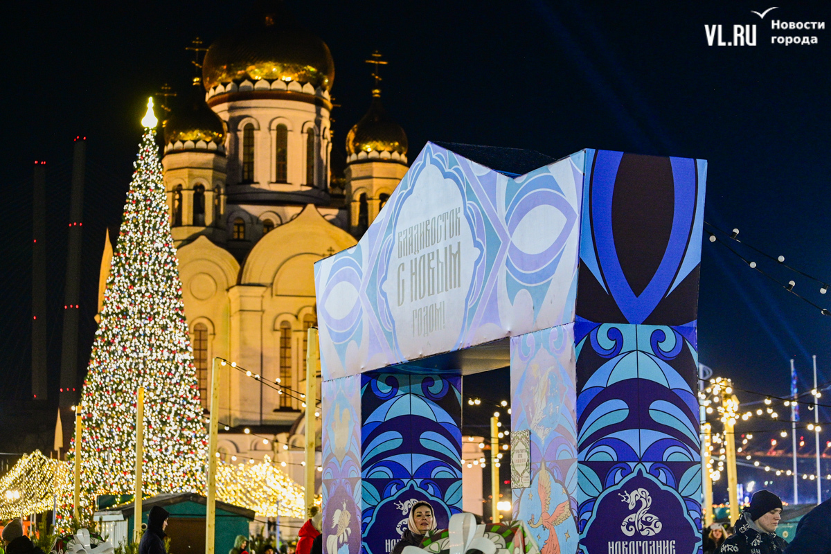 Меньше чем за неделю до Нового года, посреди рабочей недели, на центральной площади Владивостока открылся новогодний городок с катком и горками и прошёл концерт для горожан. Получился небольшой праздник, который скрасила необычно тёплая погода. Зажглись огни на ёлке, по площади ходили аниматоры, со сцены артисты пели новогодние песни. В финале праздничного открытия выступила группа «Интонация».
