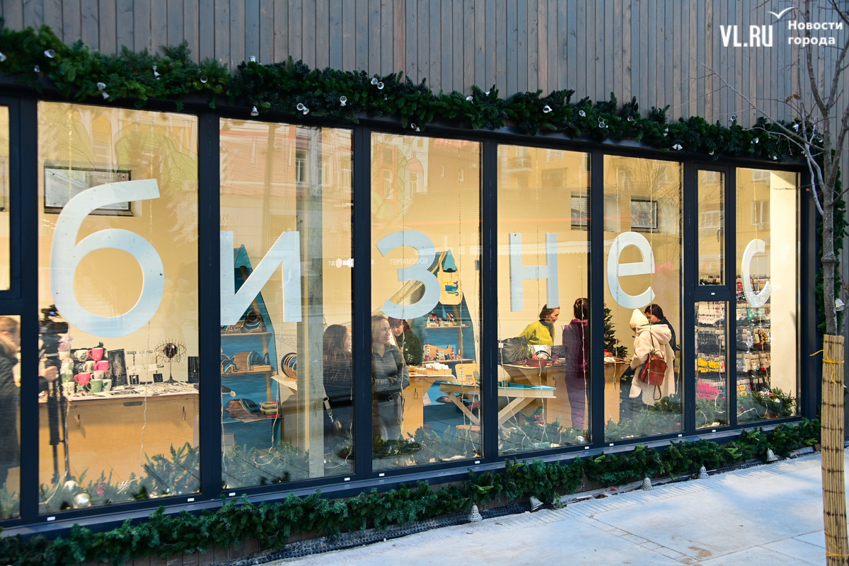 Новогодний торговый павильон открылся на пешеходной улице Фокина во Владивостоке вечером в субботу, 28 декабря. Когда стемнело, снаружи засветились декорации – гирлянды, стоящие рядом белый медведь и олень, запряжённый в сани. Через большие окна показались торговые столы, ёлки и продавцы. Открыли павильон, чтобы поддержать местных предпринимателей и расширить их рынок сбыта, а ещё – чтобы дать жителям и гостям Владивостока возможность купить своим близким подарки, созданные местным производителем.