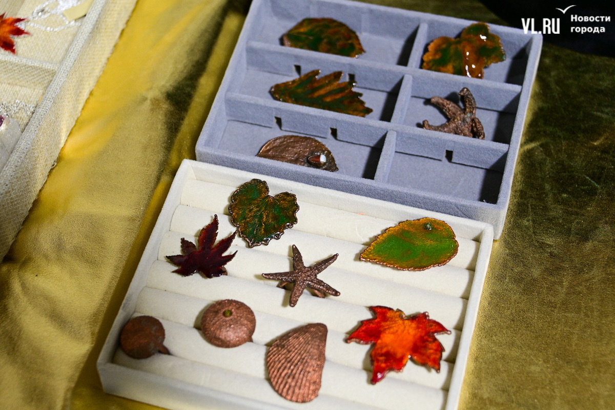Художник-ювелир Маргарита Клименко создаёт украшения с приморской душой. Часть их сделана из природных материалов – листьев, ракушек и раковин, морских ежей. Покрытые медью и серебром, они сохраняют свою форму и природную красоту. Другие изделия – копии находок, воссозданные по историческим книгам и музейным коллекциям. Третьи – из кристаллов и камней Дальнегорского месторождения Приморского края и других мест Дальнего Востока.