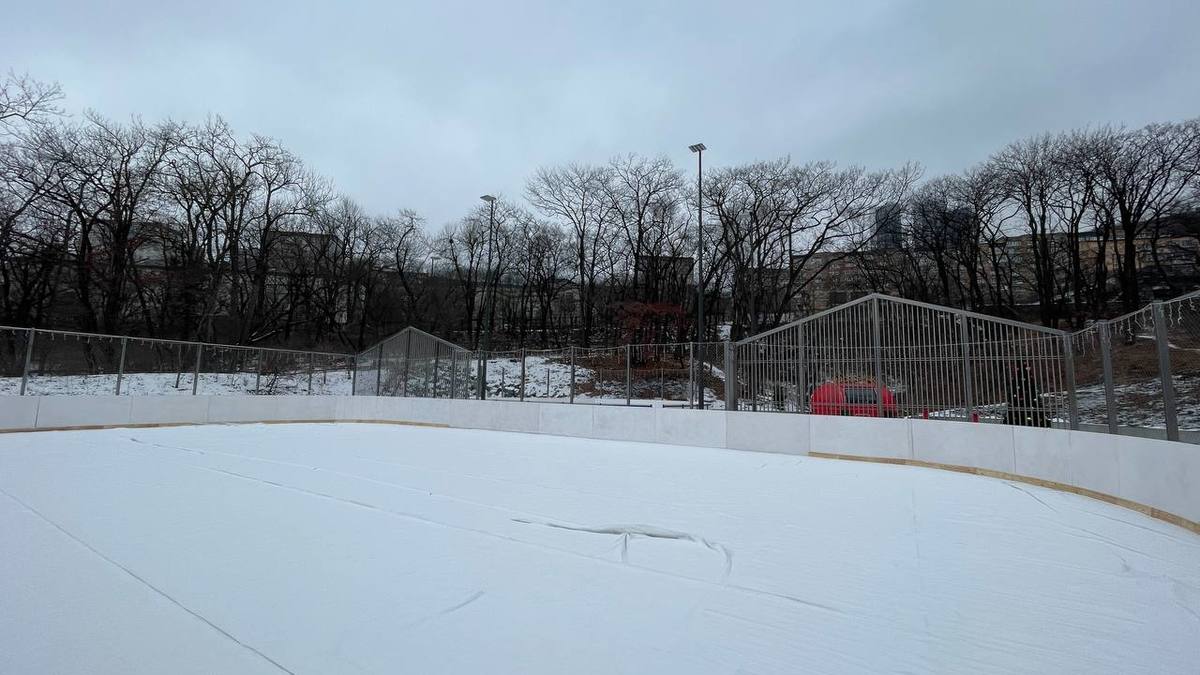 Каток заливают на месте баскетбольных площадок, которые не в сезон пустуют. На льду организуют две отдельные зоны: для взрослых и для детей. Прокат коньков будет, но платный. В субботу каток ещё не будет работать, его рассчитывают открыть в воскресенье, если погода позволит. Вход свободный.