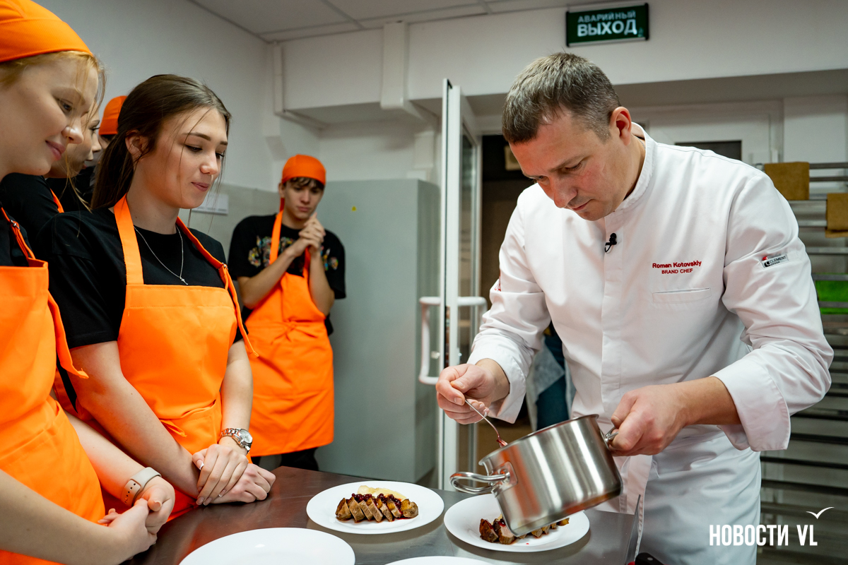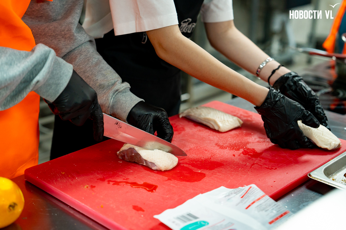Бренд-шеф паназиатского ресторана «Зума» Роман Котовский поделился рецептом, как за 30 минут преобразить новогодний стол. Вместе с учениками девятых классов в Колледже технологии и сервиса опытный повар приготовил филе утки с грушей и кофейно‑брусничным соусом. Это не обычное блюдо, а красивое и вкусное звучание вперемешку с простыми и знакомыми ингредиентами в ярком исполнении. На мастер-классе подростки учились профессиональным приёмам на практике – с ошибками и выводами, собирая полезный опыт в копилку. Мы предлагаем учесть эти знания и приготовить блюдо у себя дома.