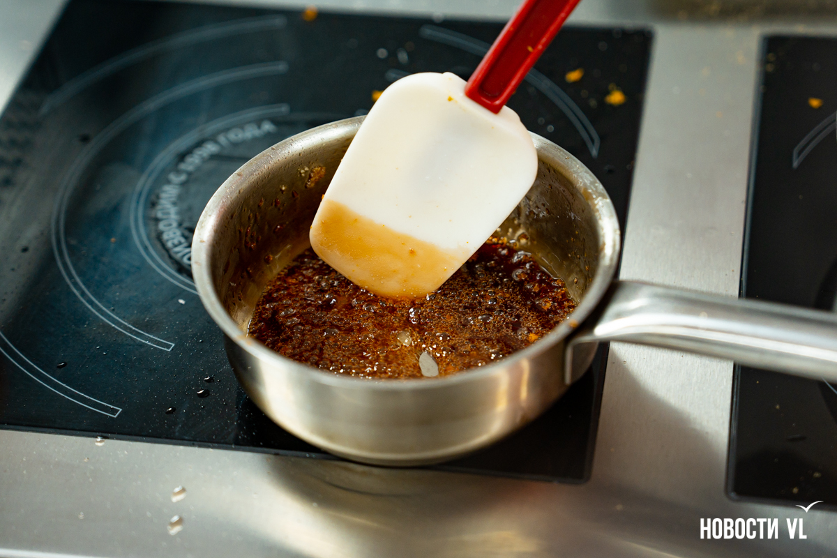 Несмотря на детальный разбор специфики приготовления соуса и самой утки, а также на постоянно курсирующего шефа с проверками, некоторые ребята справились с задачей не очень успешно – у одних сгорело филе, а у двоих – карамель.