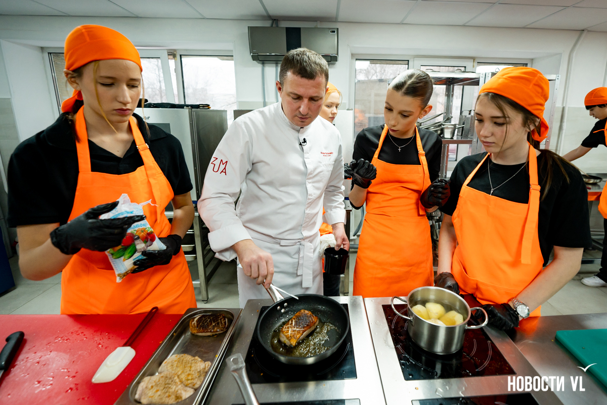 В общей сложности занятие продлилось недолго. Больше всего по времени заняли как будто подготовительные сборы перед входом на кухню. Справиться с блюдом так же оперативно, как шеф, ребята тоже не смогли, но разница вышла небольшая – только минут на 15 дольше.