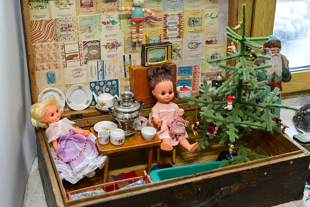 Пополнилась и постоянная экспозиция старинных ёлочных игрушек – теперь в одной из витрин летает не одна Марина Раскова, у неё появилась подружка, которую уже успели прозвать «ниндзей». Неподалёку расположился «новый» красноармеец на лыжах. Наконец был собран набор игрушек, созданный к сельскохозяйственной выставке на ВДНХ 1936 года – здесь и доярка, и лошадь, которую пытались раздобыть пять лет. Ещё появился геолог-ковбой из «Изокульта» – настоящая редкость. Отдельную витрину заняли современные игрушки фабрики «Ариель», которая выпускает ограниченные серии высокохудожественных игрушек.