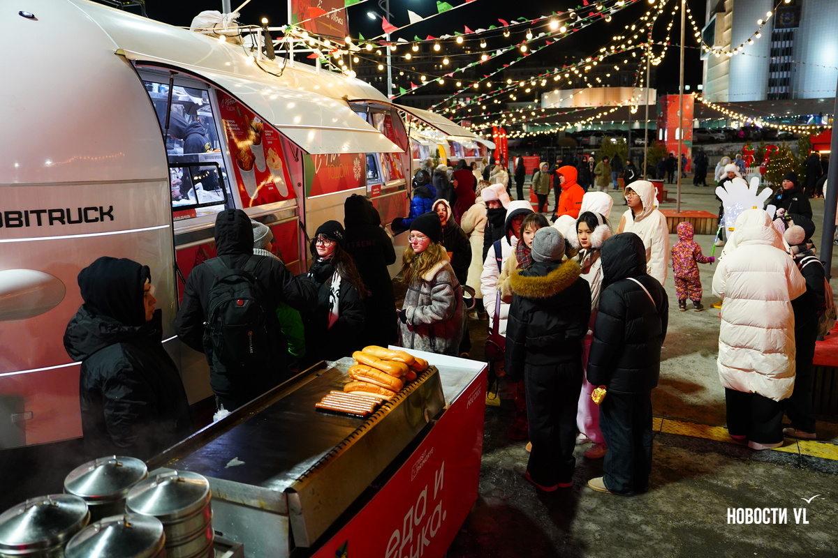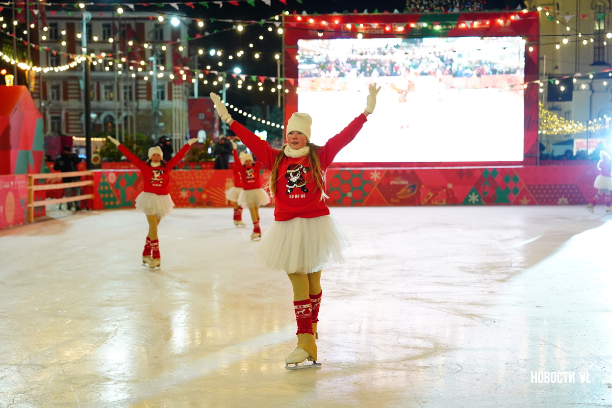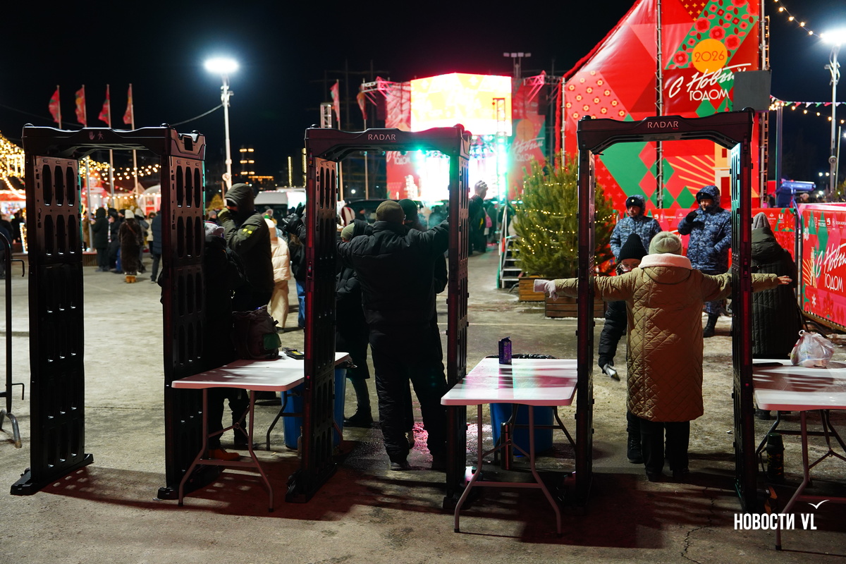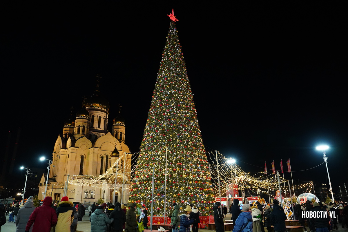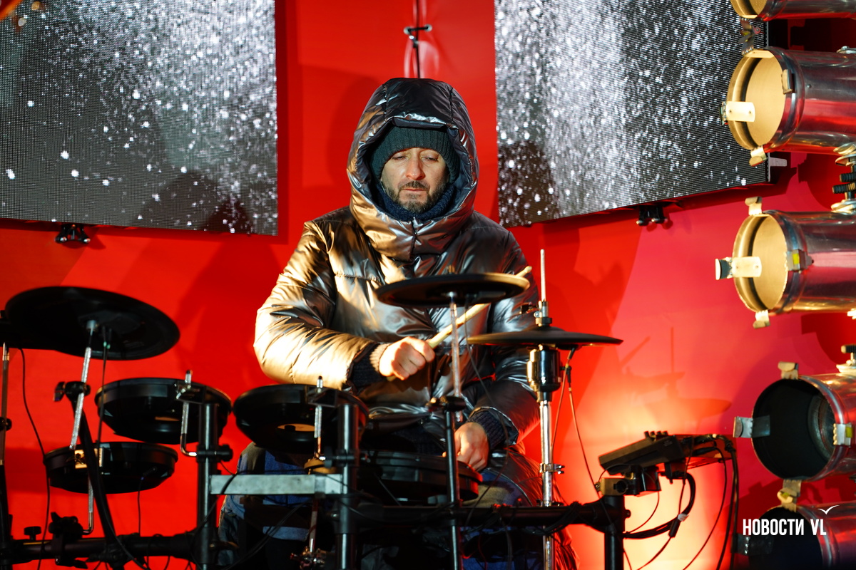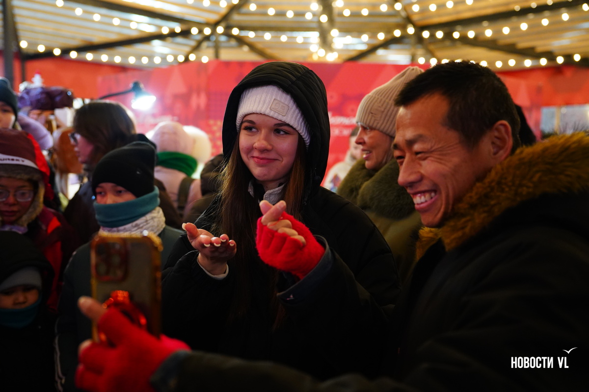 На центральной площади Владивостока горожане и гости города провожают 2025 год и встречают новый, 2026-й. Людей пока мало, но с каждой минутой их становится всё больше. В основном собираются возле главной сцены, где сейчас выступают творческие коллективы, поют новогодние песни о зиме и главном зимнем празднике.